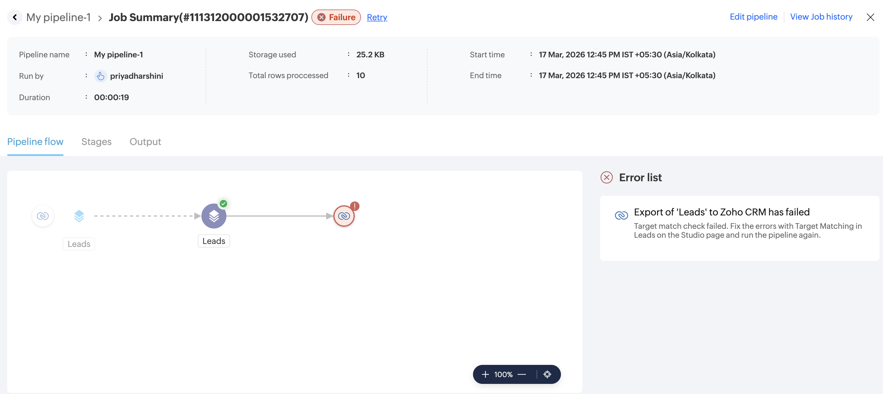 - In the Job summary page, click the Edit pipeline option on the top right corner. This will take you to the Pipeline builder page.