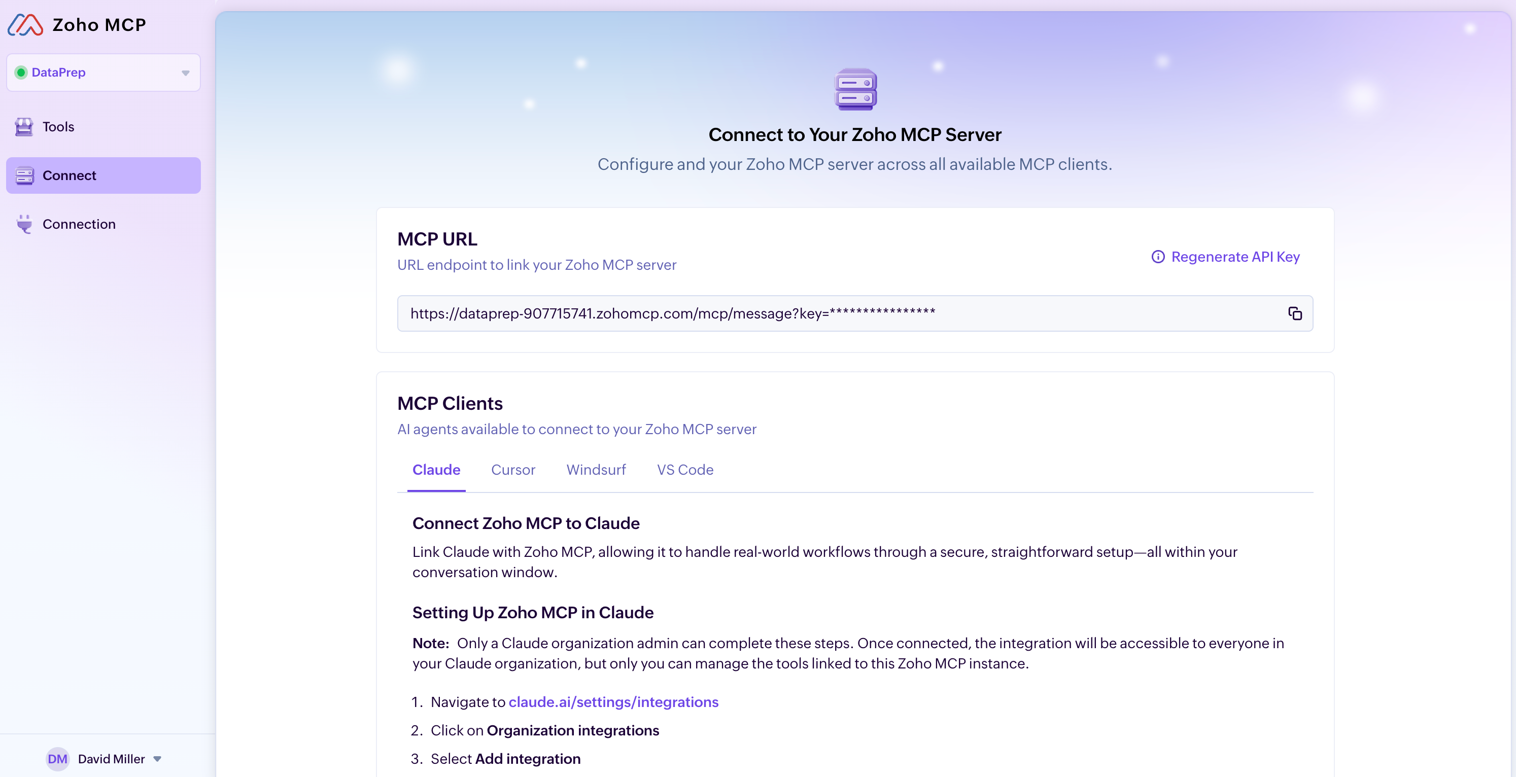 Link Claude with Zoho DataPrep MCP, allowing it to handle real-world workflows through a secure, straightforward setup—all within your conversation window.