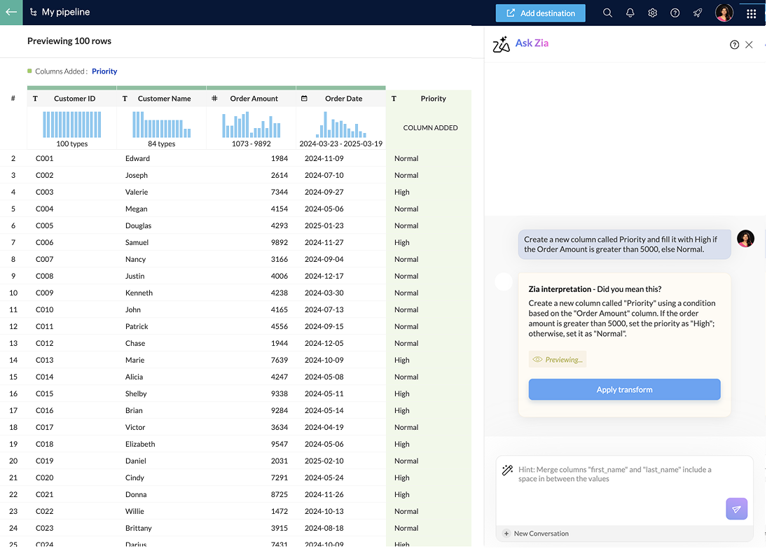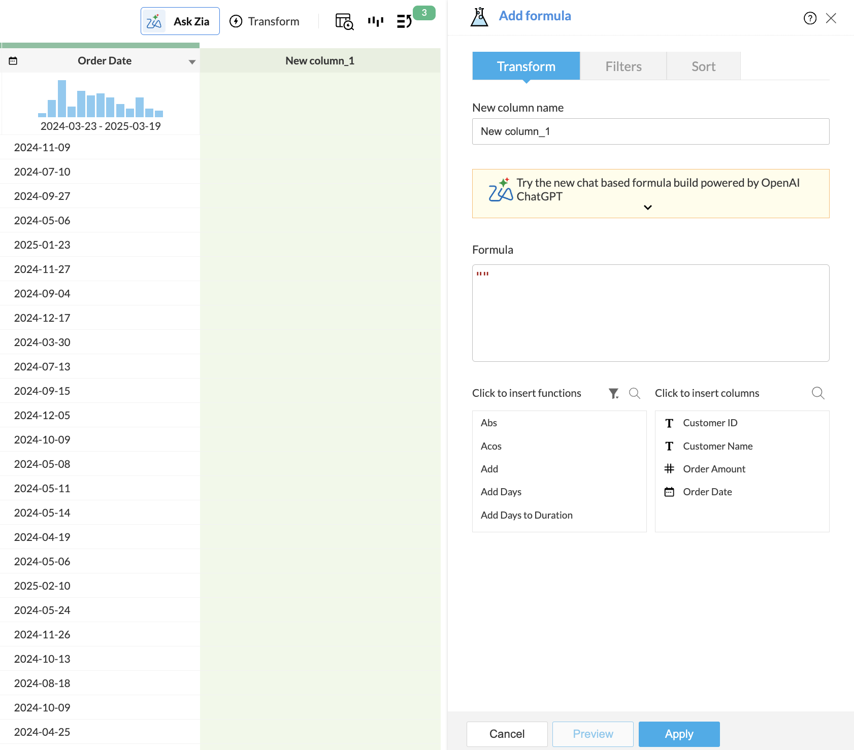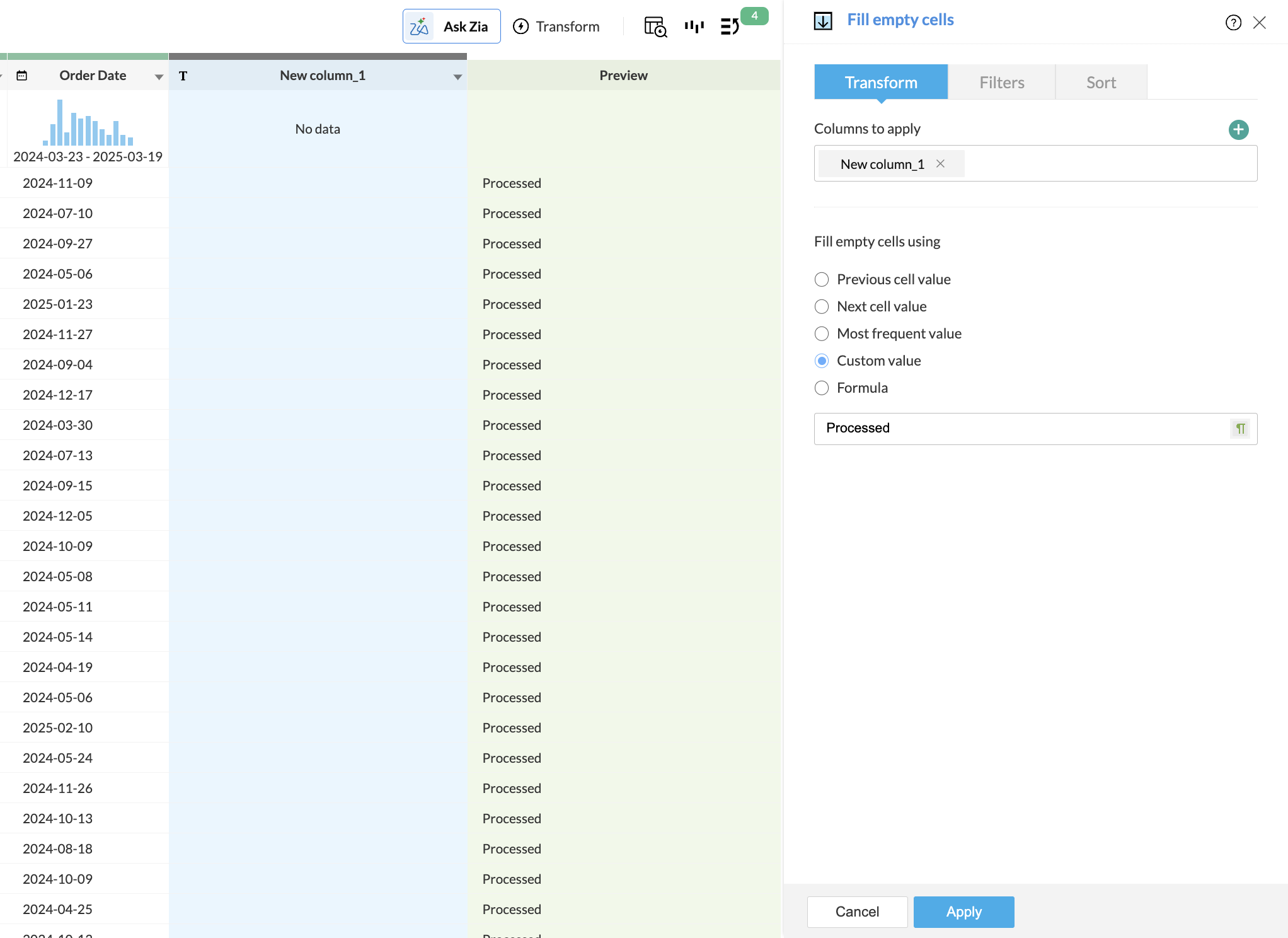 You can also use Ask Zia to add a new column and fill values in it with a simple prompt.