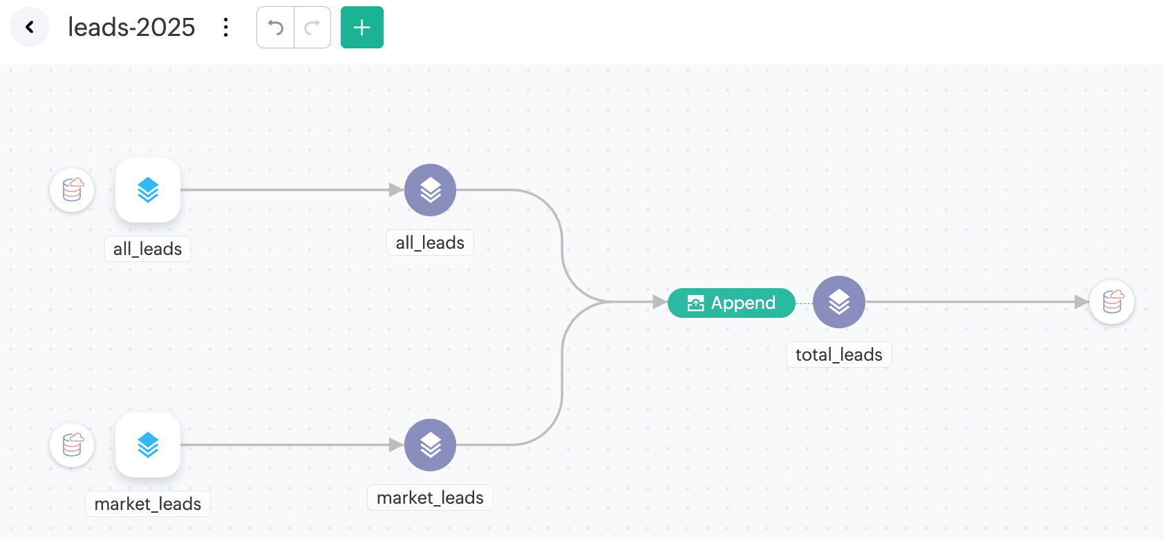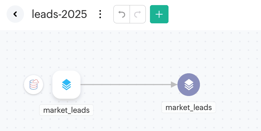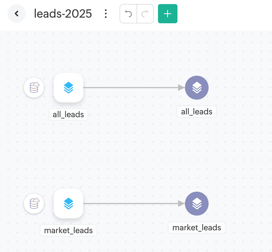 Import the output table all_leads from your cloud database (e.g., PostgreSQL) into DataPrep. This data will be used to compare with the source data to identify which records are new or updated.