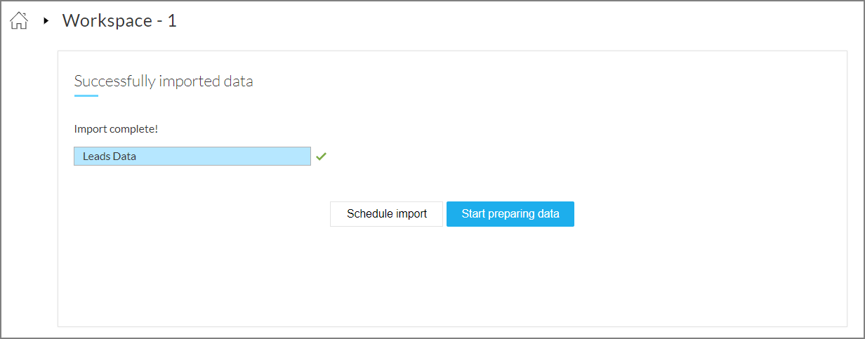 5. Once you have completed importing data, you can choose to schedule this import, or start preparing your data right away.