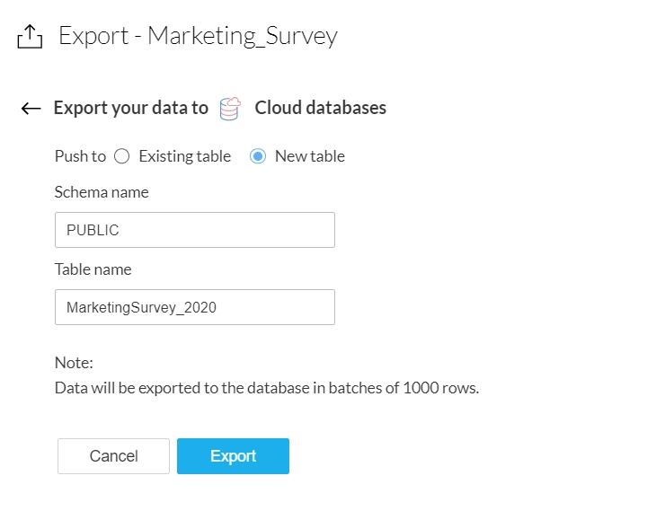 8. Once you have successfully connected to your cloud database, you can choose how and where to export the data.