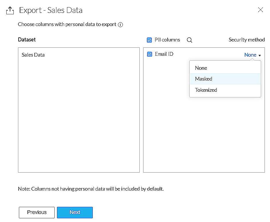 3. If your data contains columns with personal data, you can choose to include or exclude some or all of them columns in the PII columns section.
