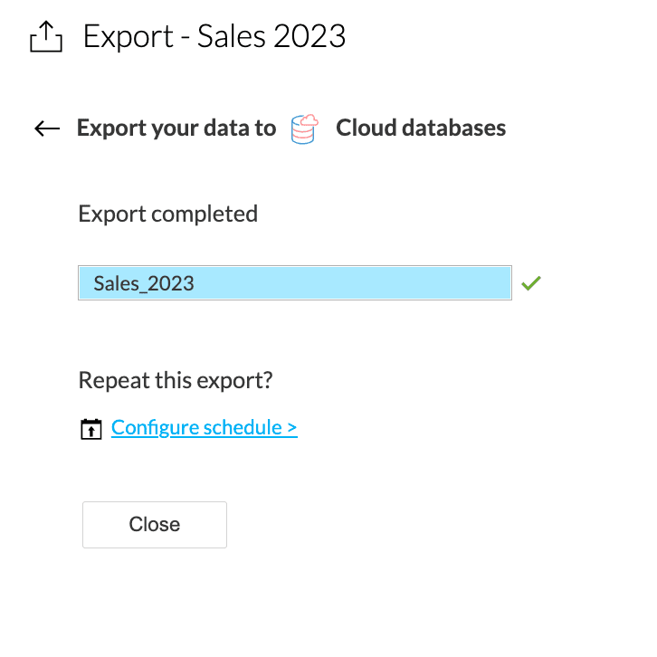 13. Once the export is complete you can choose to schedule the export by clicking the Schedule configuration> link below.