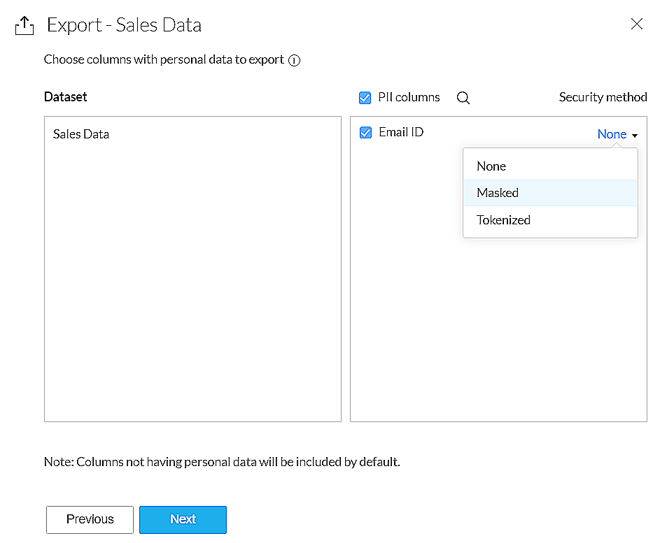 1. Click the Export now option from the Export menu on the DataPrep Studio page.