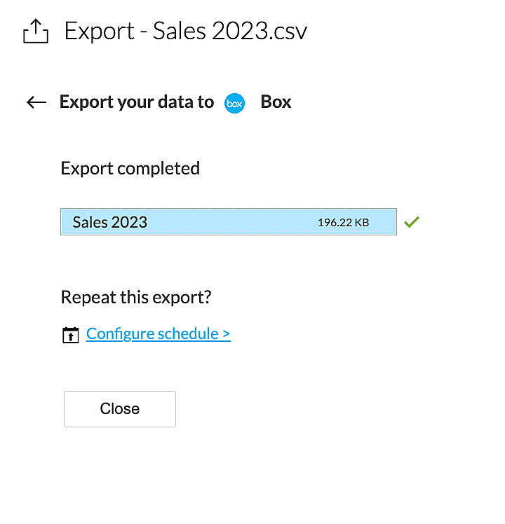 10. You can schedule the export by clicking the Configure schedule> link that appears after successful export.