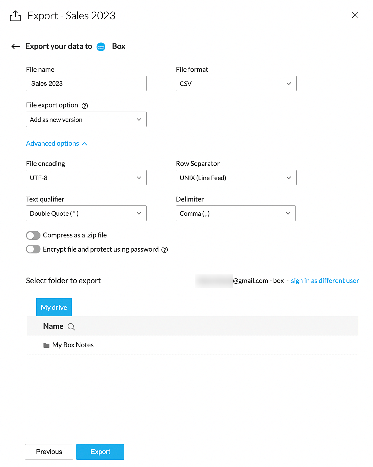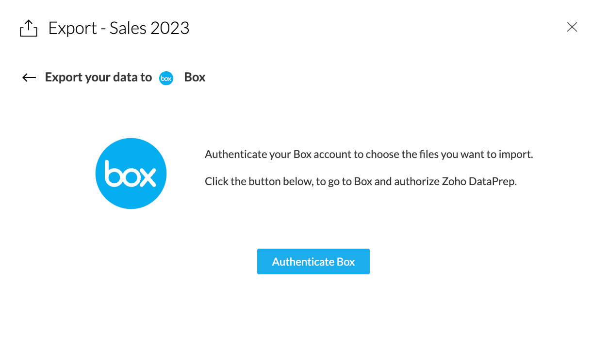5. You will need to authenticate Box when you try connecting to Box for the first time. Click the Authenticate Box button to authenticate your account with your credentials.