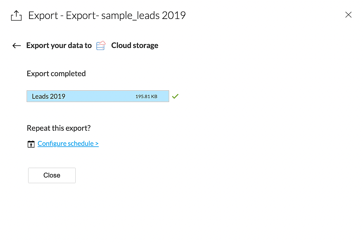 9.  The export can be scheduled by clicking the Configure schedule> link after successful export.