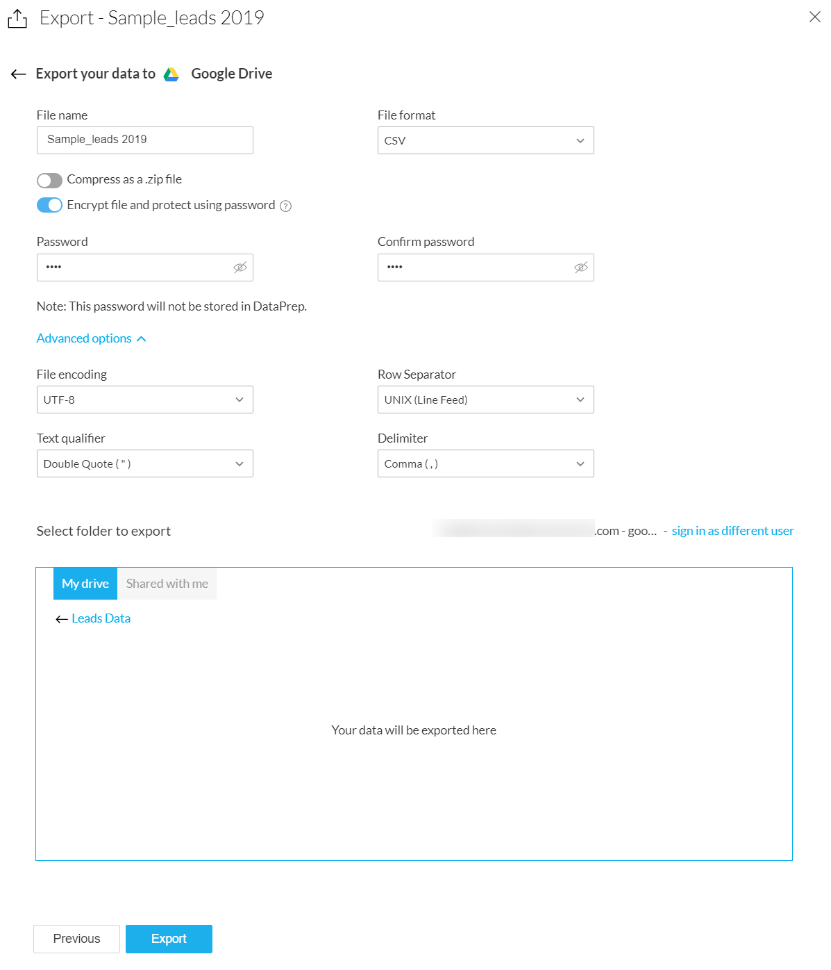 1. Exporting datasets without securing personal data will be restricted if Secure data exports option is enabled in your organization's privacy settings. Click here to know more.