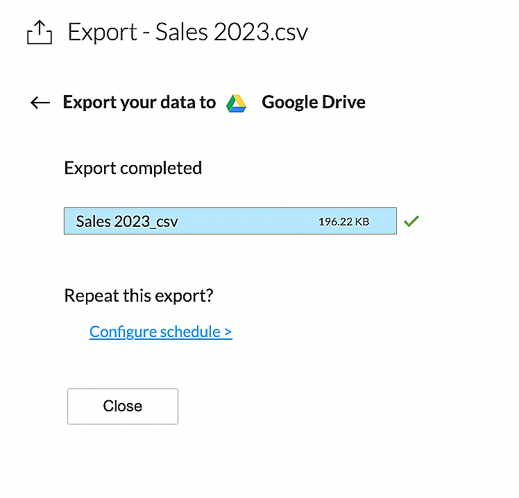 9. You can schedule the export by clicking the Configure schedule> link that appears after successful export.