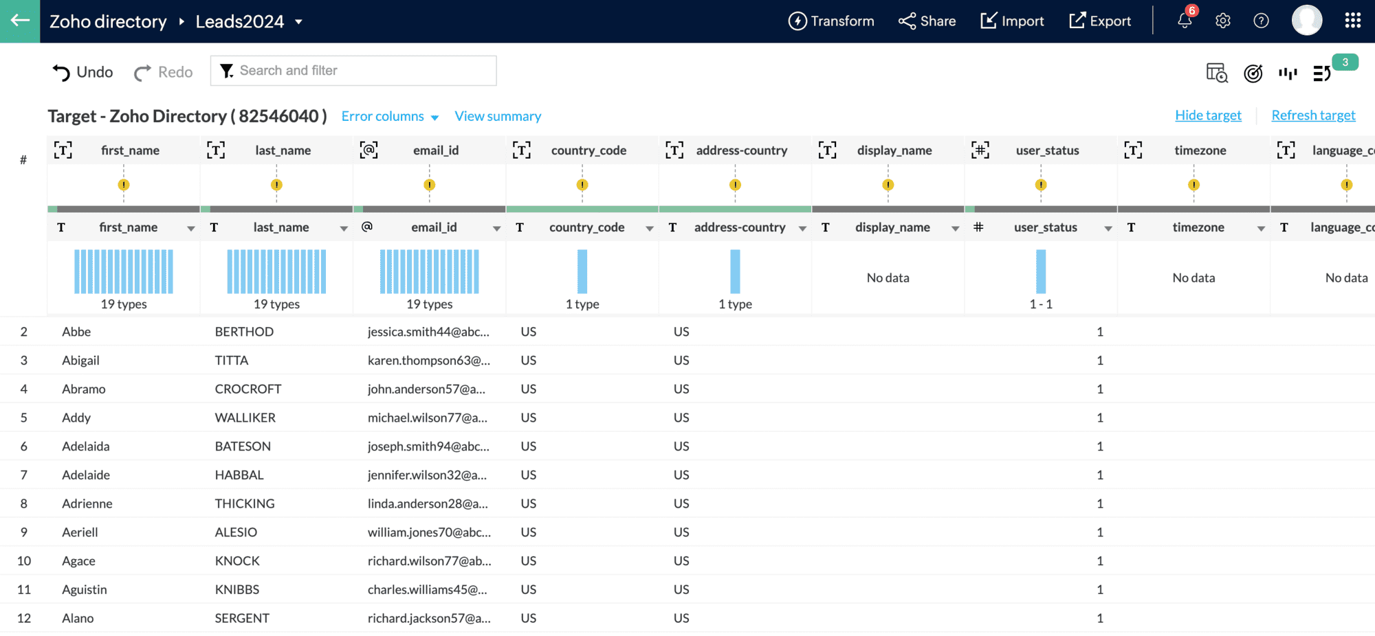 4. After fixing the errors, you can proceed with exporting your data to Zoho Directory.