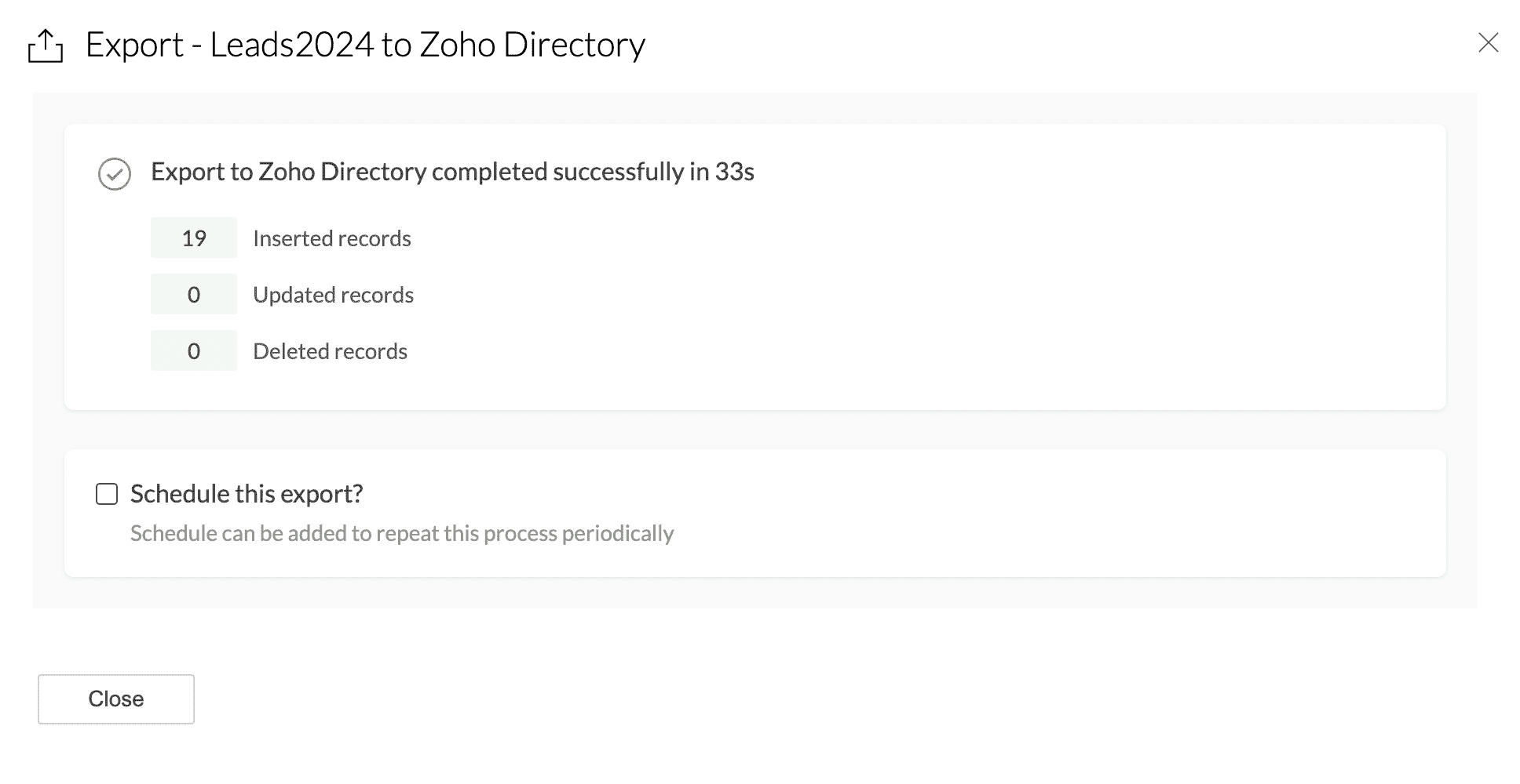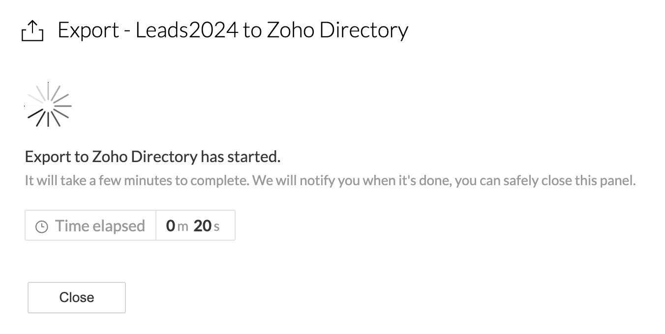 6. Click Export to export your data to Zoho Directory.