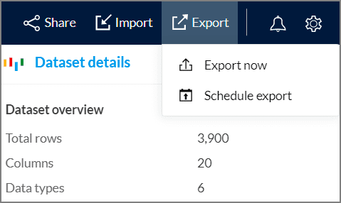 1. Click the Export now option from the Export menu in the DataPrep Studio page.