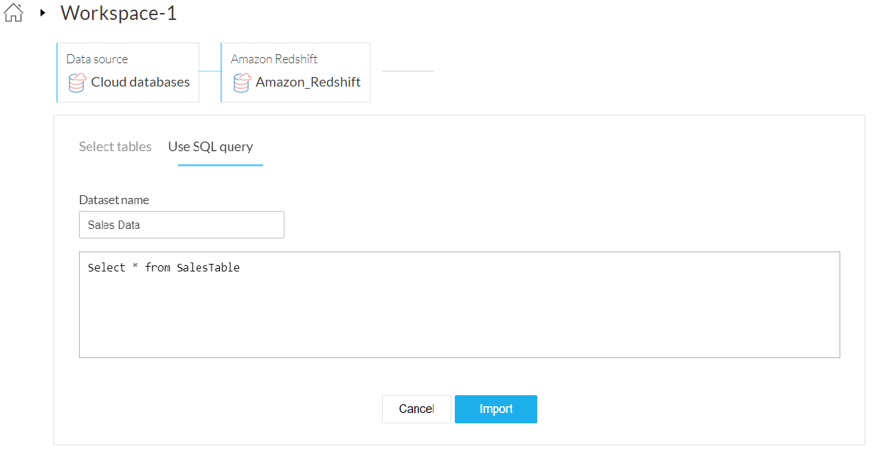 7. Click Import to begin importing data from your Amazon Redshift account.