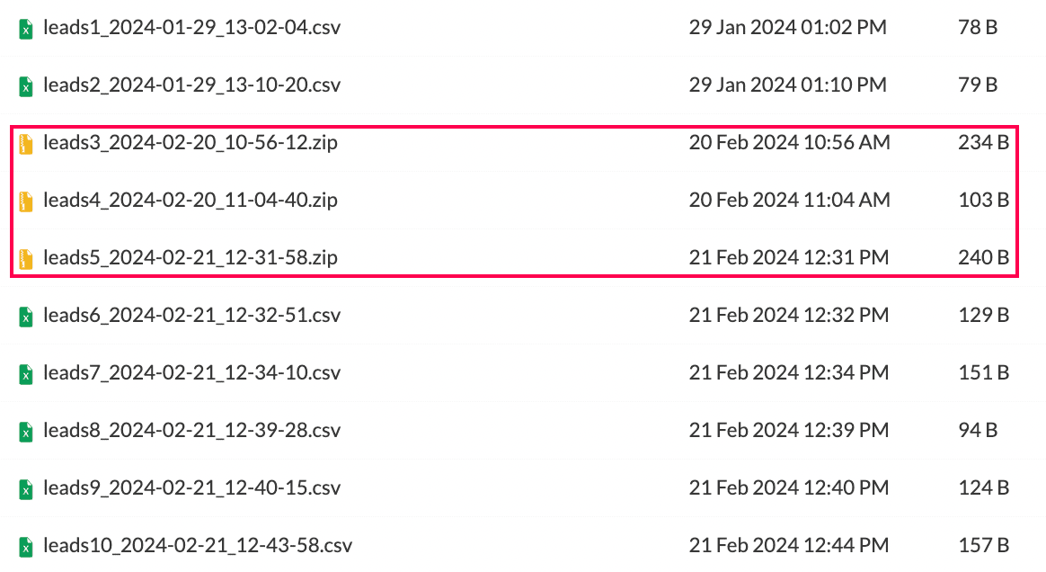 5) The next file i.e. leads2_2024-01-29_13-10-20.csv will be fetched incrementally. Again, export it to the required destination before reloading, or you'll lose your data.