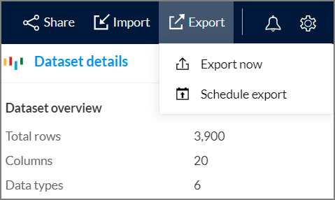 3. After importing the data, click the Export now option from the Export menu on the DataPrep Studio page and export it to the required destination before reloading, or you'll lose your data.