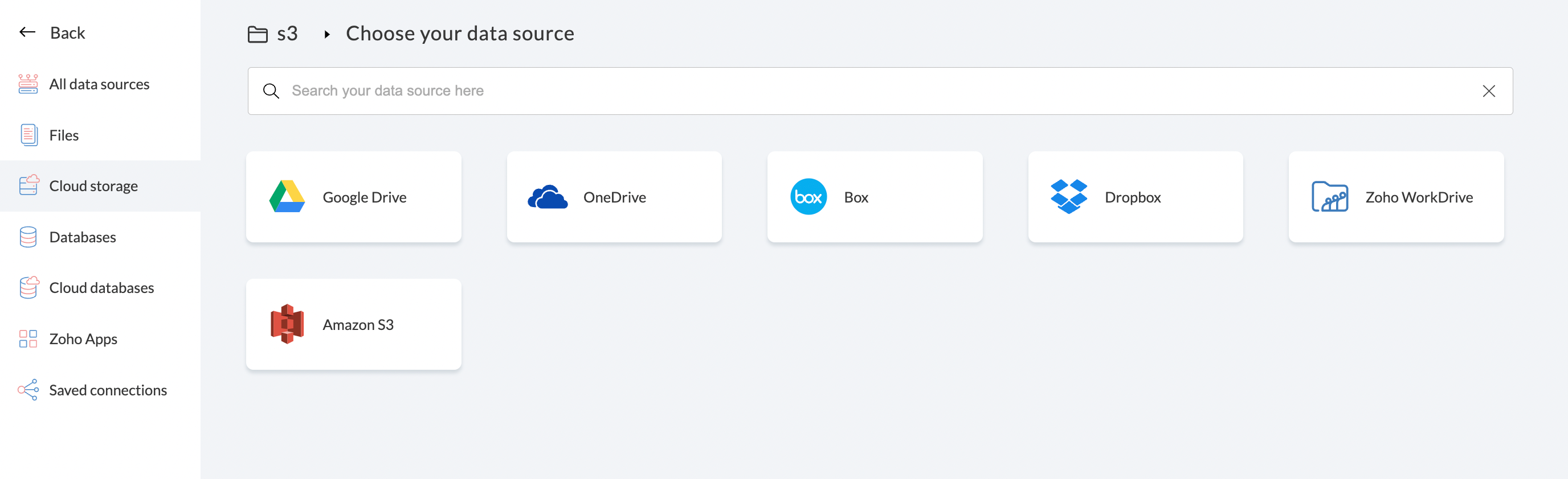 1. Choose the Cloud storage category from the left pane and select Amazon S3. You can also search Amazon S3 in the search box.
