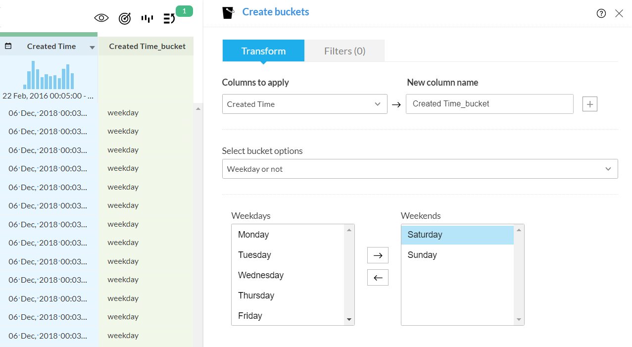 This option lets you create a new column next to the date column to classify weekdays and weekends.