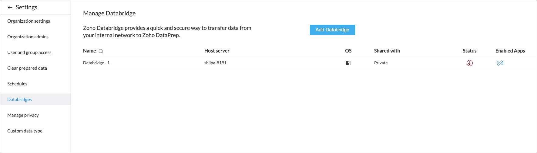 • Databridge in Zoho DataPrep