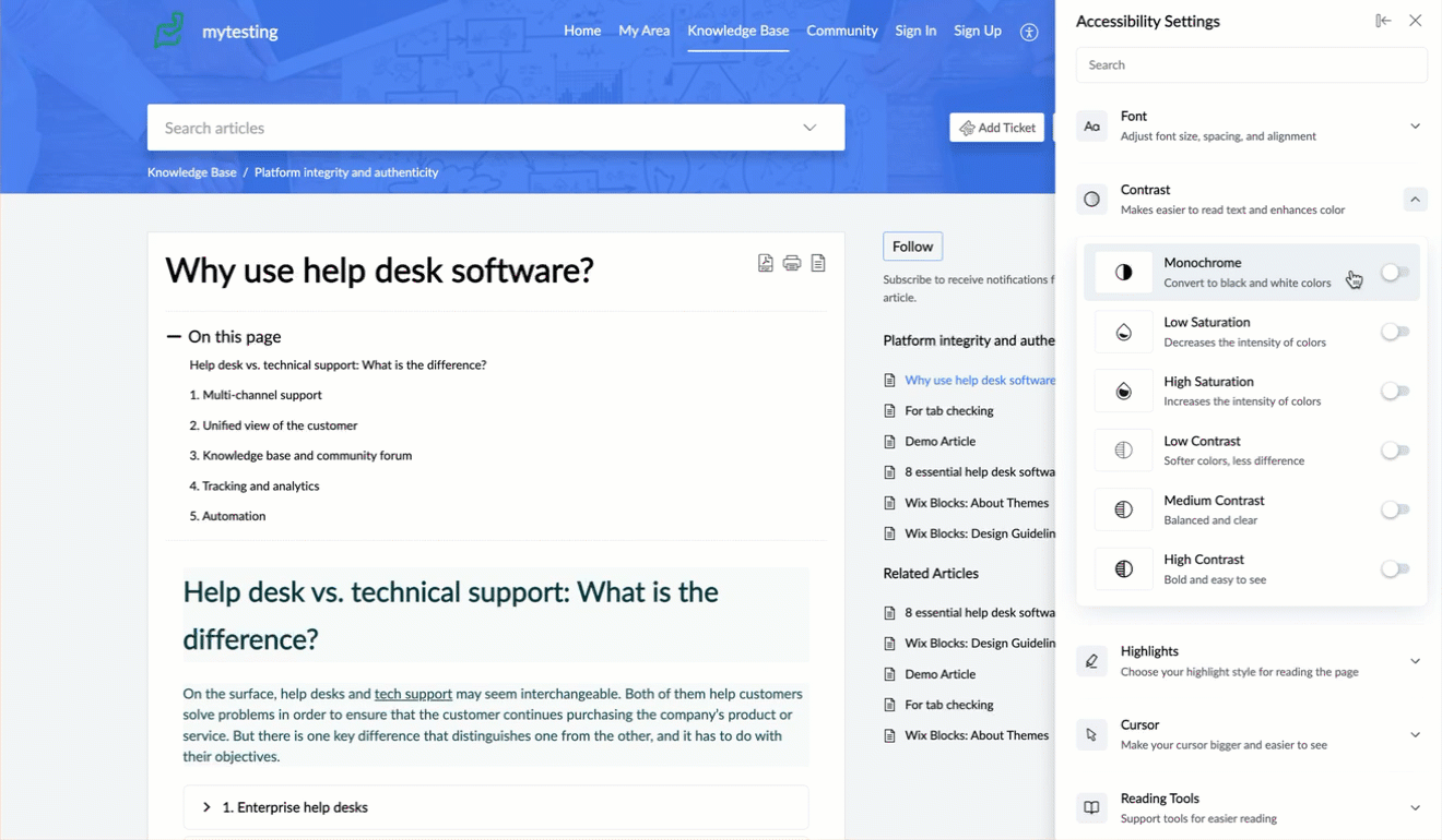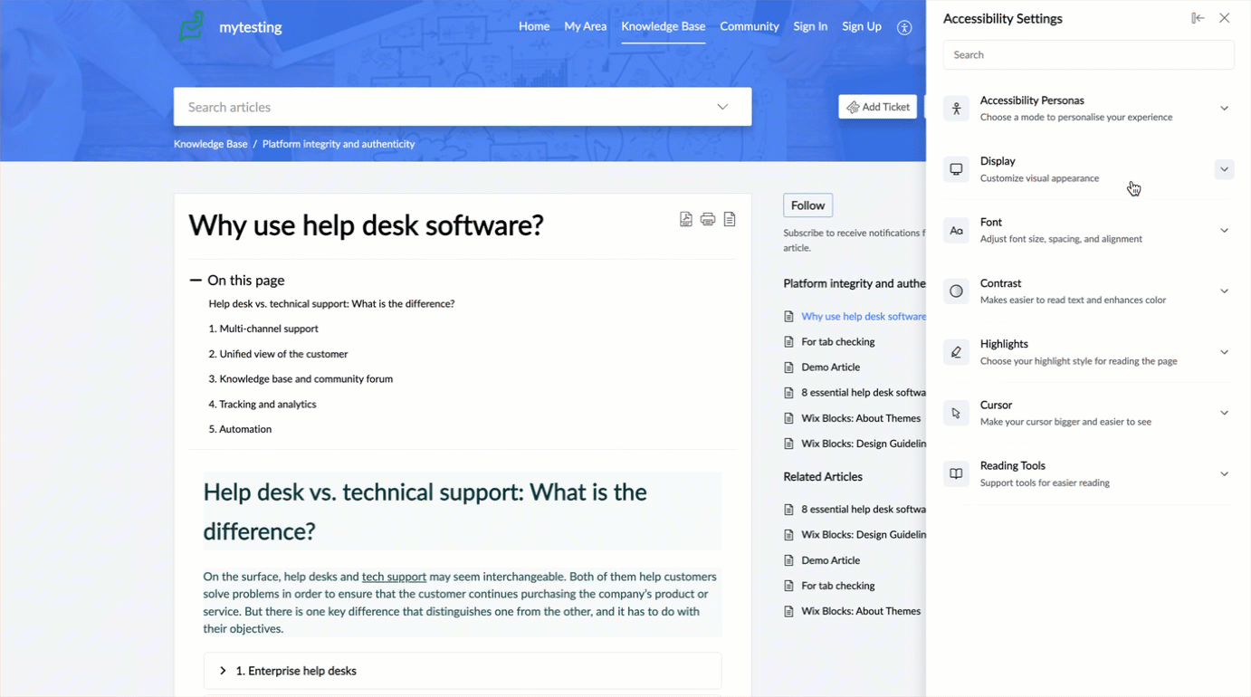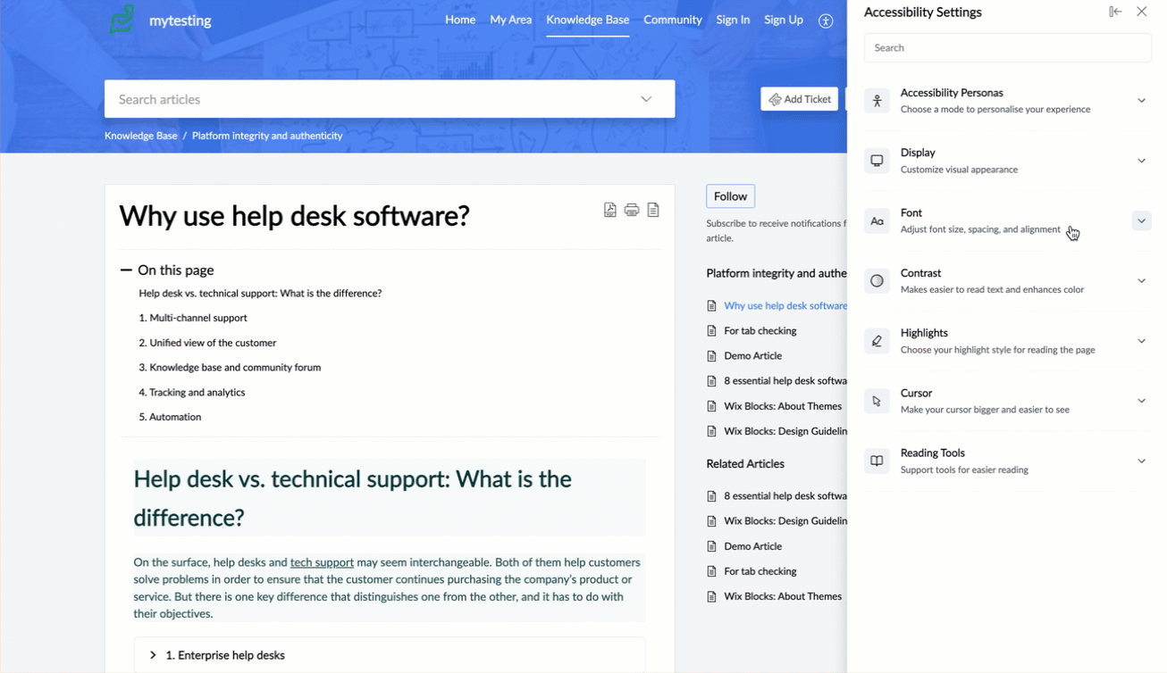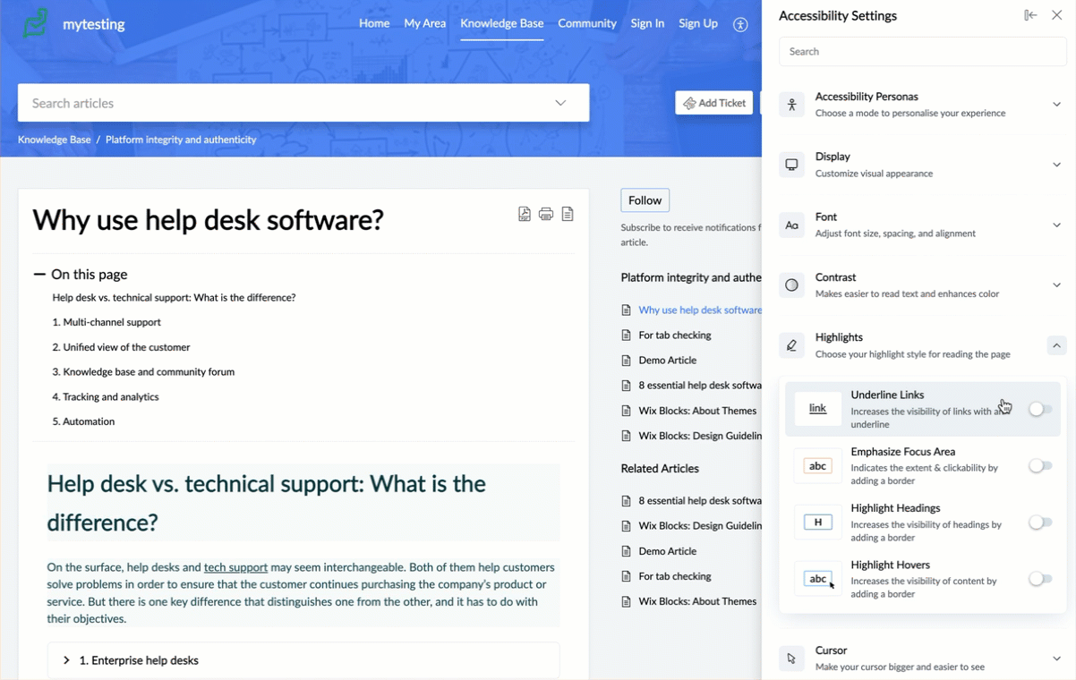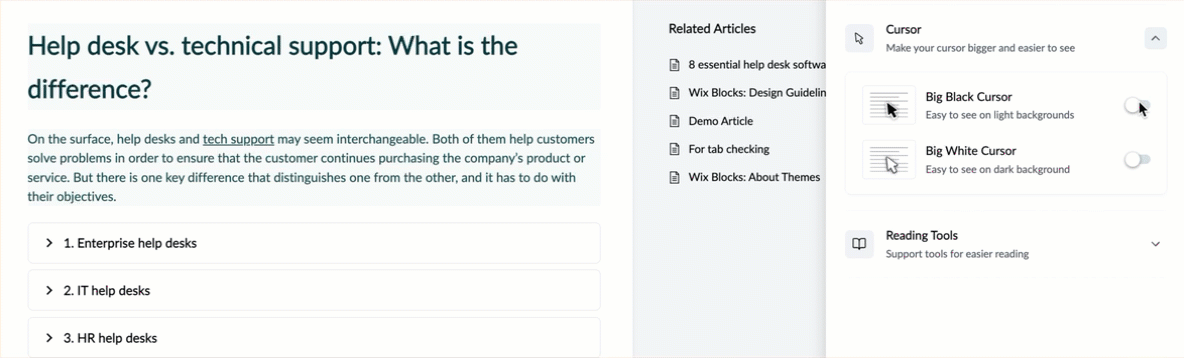 Reading Guide | Adds a moving highlight to guide reading as you navigate through the content. |