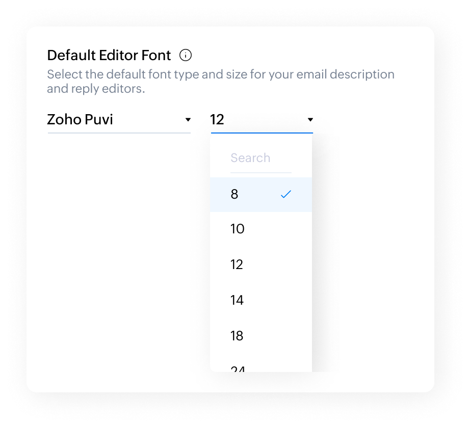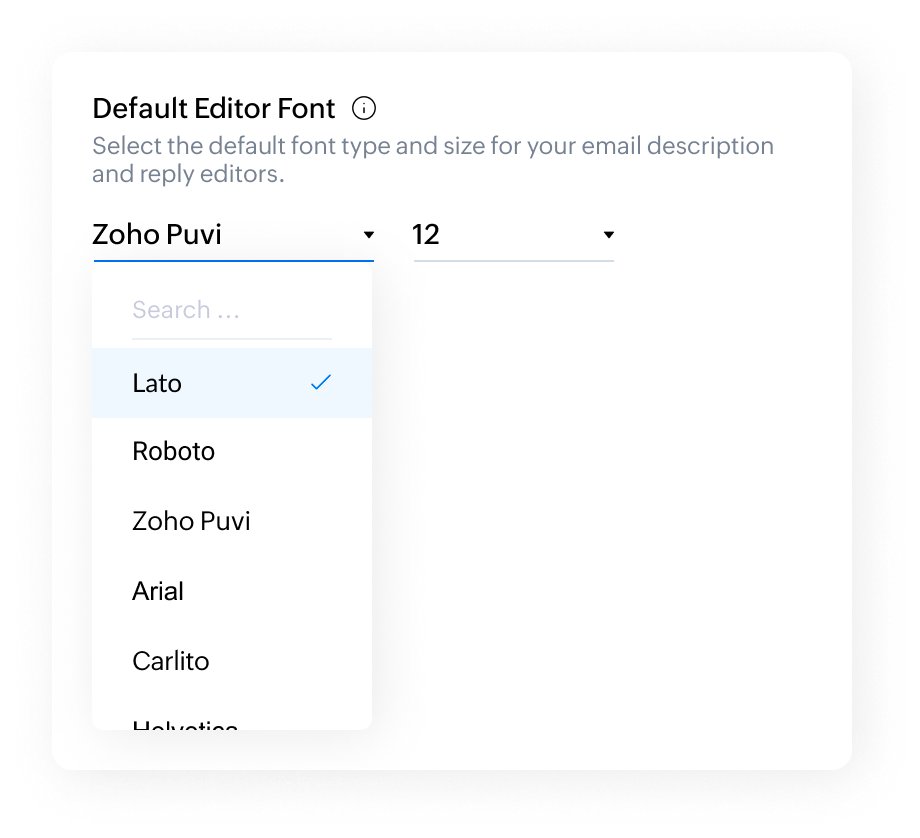 Users can select the font they prefer. By default, Zoho Desk offers the following font options: