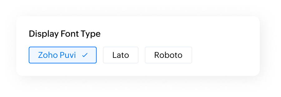 - Zoho Puvi - Zoho's proprietary font that embodies the brand's unique visual identity. It ensures readability at various sizes, resolutions, and conditions. Puvi is our default font.