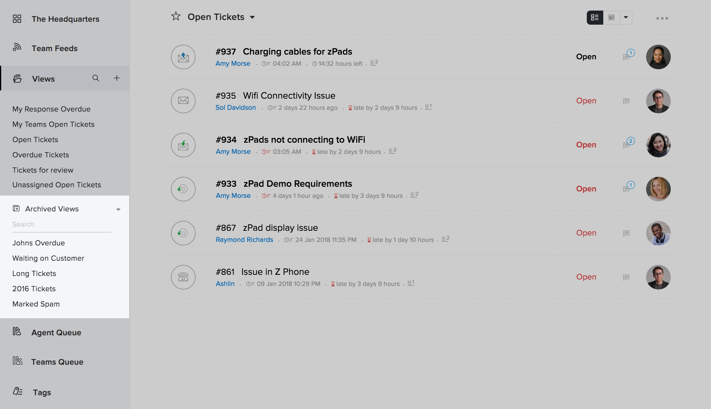 - Archiving applies to all custom list views under the Tickets, Activities, Tasks, Calls, Events, Contacts, and Accounts modules.