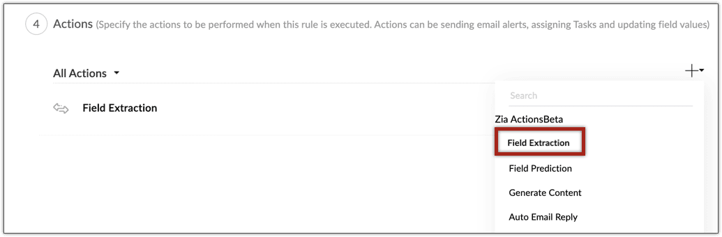 Zia actions in Workflows: Field Extraction and Field Prediction are opened in a phased manner and will be available only for selected users. We will soon roll it for all users. These features are supported in Enterprise edition.