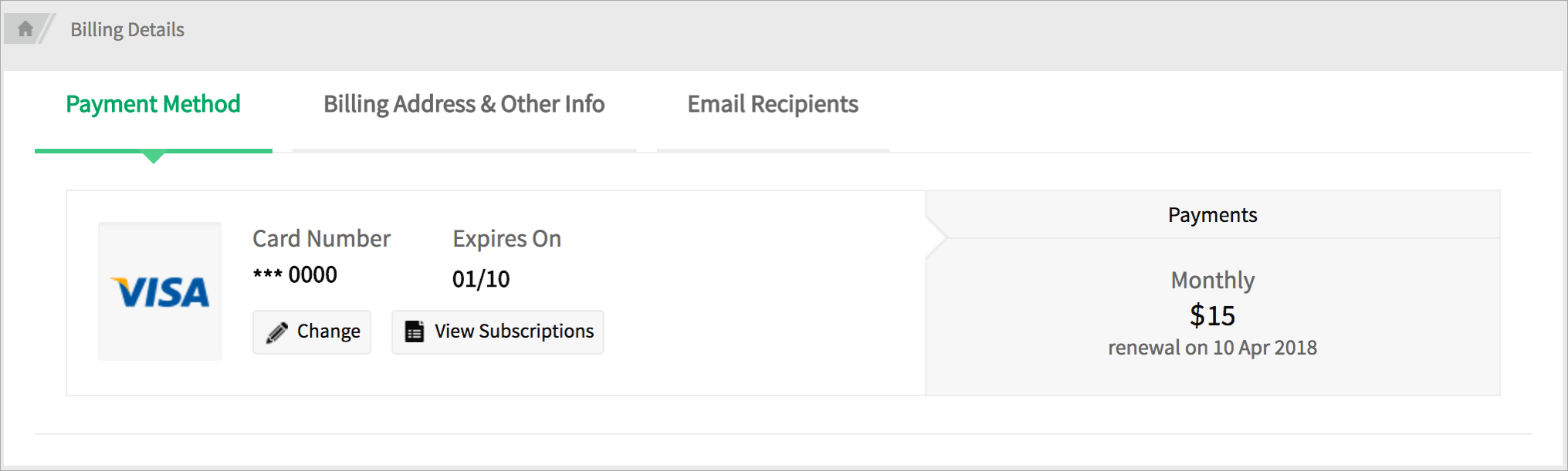 You will be taken back to the Payment Method page where the newly updated card details will be displayed.