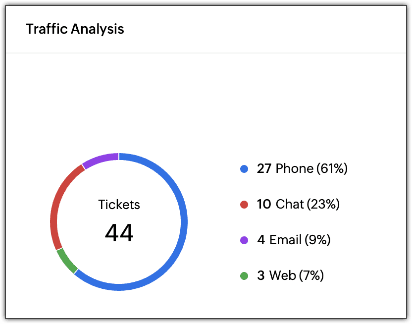 . - Traffic analysis: A donut chart that shows the percentage of tickets from each channel.