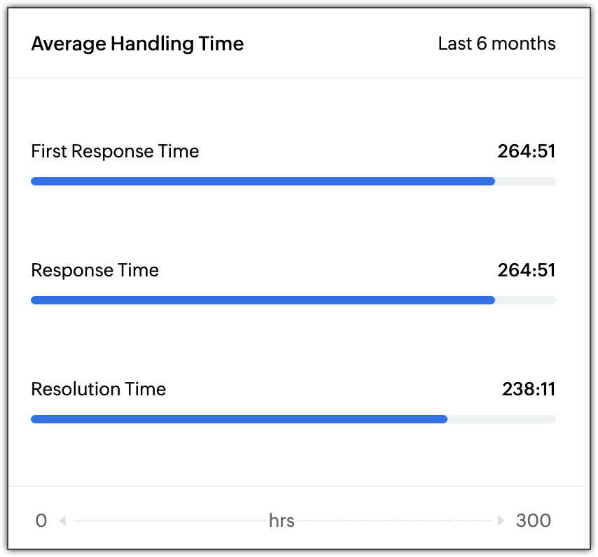 - Average handling time: The average time taken for the specific contact's tickets or for the specific account's ticket to: