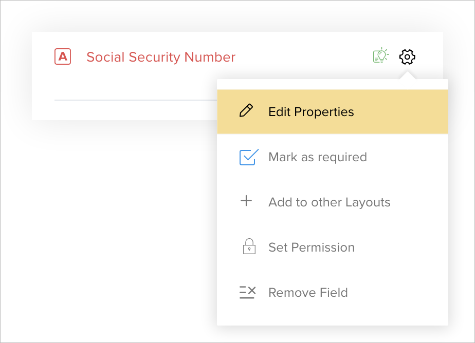 5. In the module layout editor, go to the field you wish to encrypt, click the Settings icon (  ), and select Edit Properties.