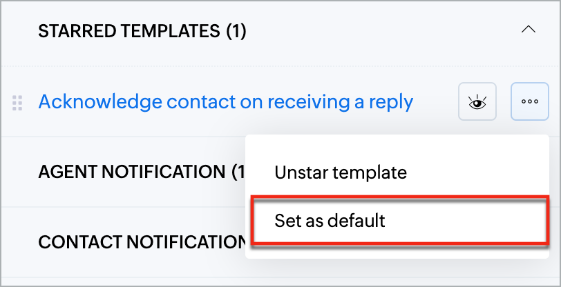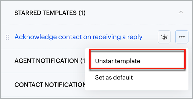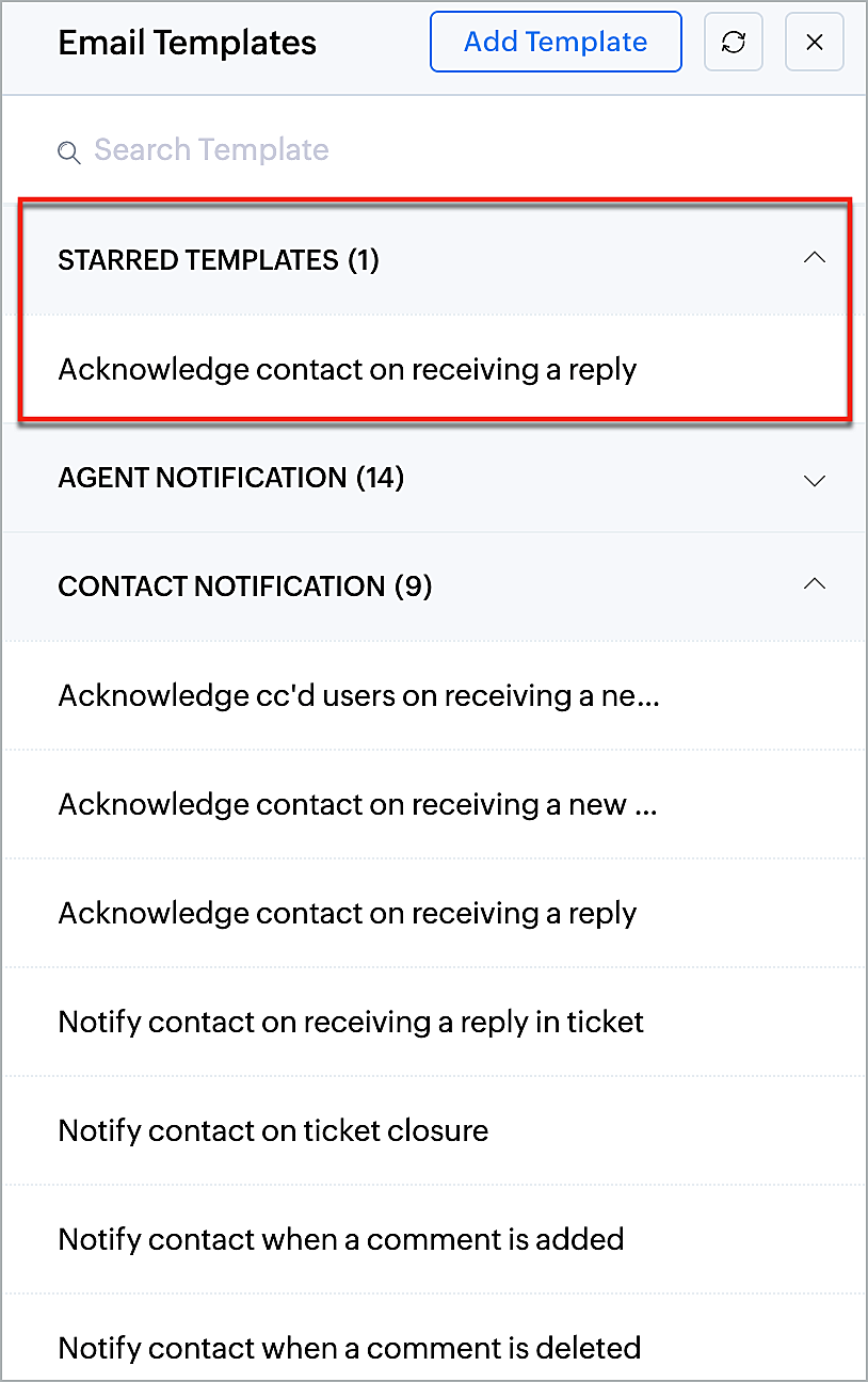 You can star an email template to make it easier to find and access. Users can star the templates that they want to mark as important and refer to them easily. These templates can be found in the starred section above all other email template folders. Users can reorder them by dragging and dropping them within the starred section.