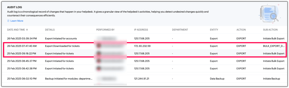 - Module: The module from which the data was exported (e.g., Tickets, Contacts, etc.)