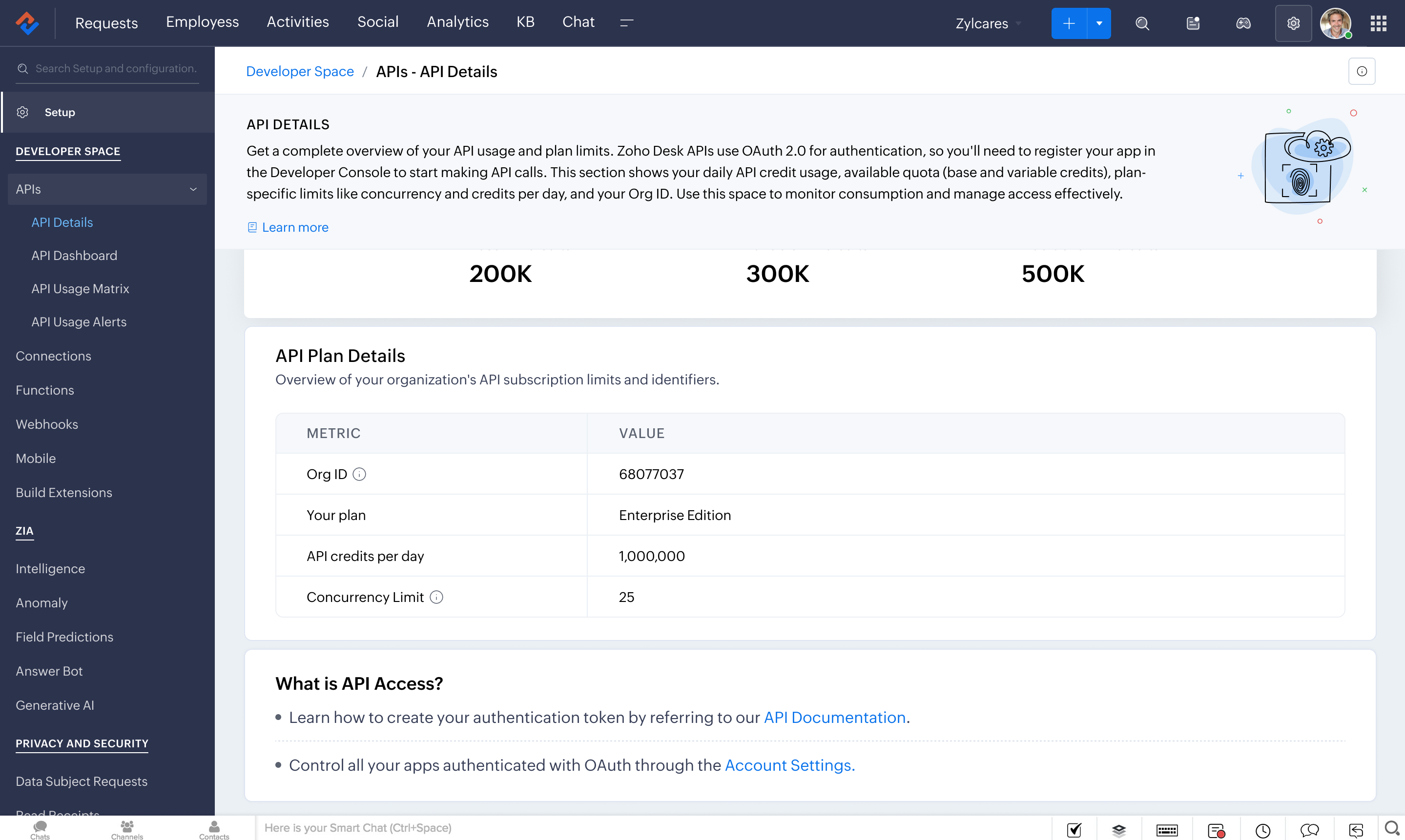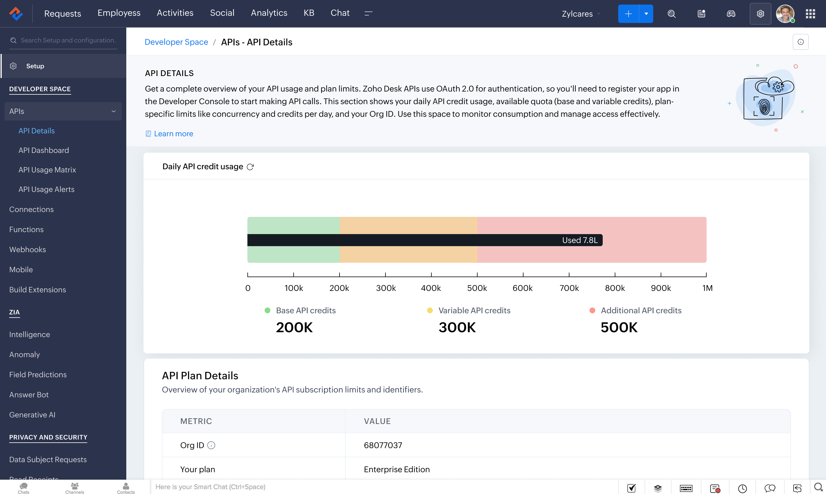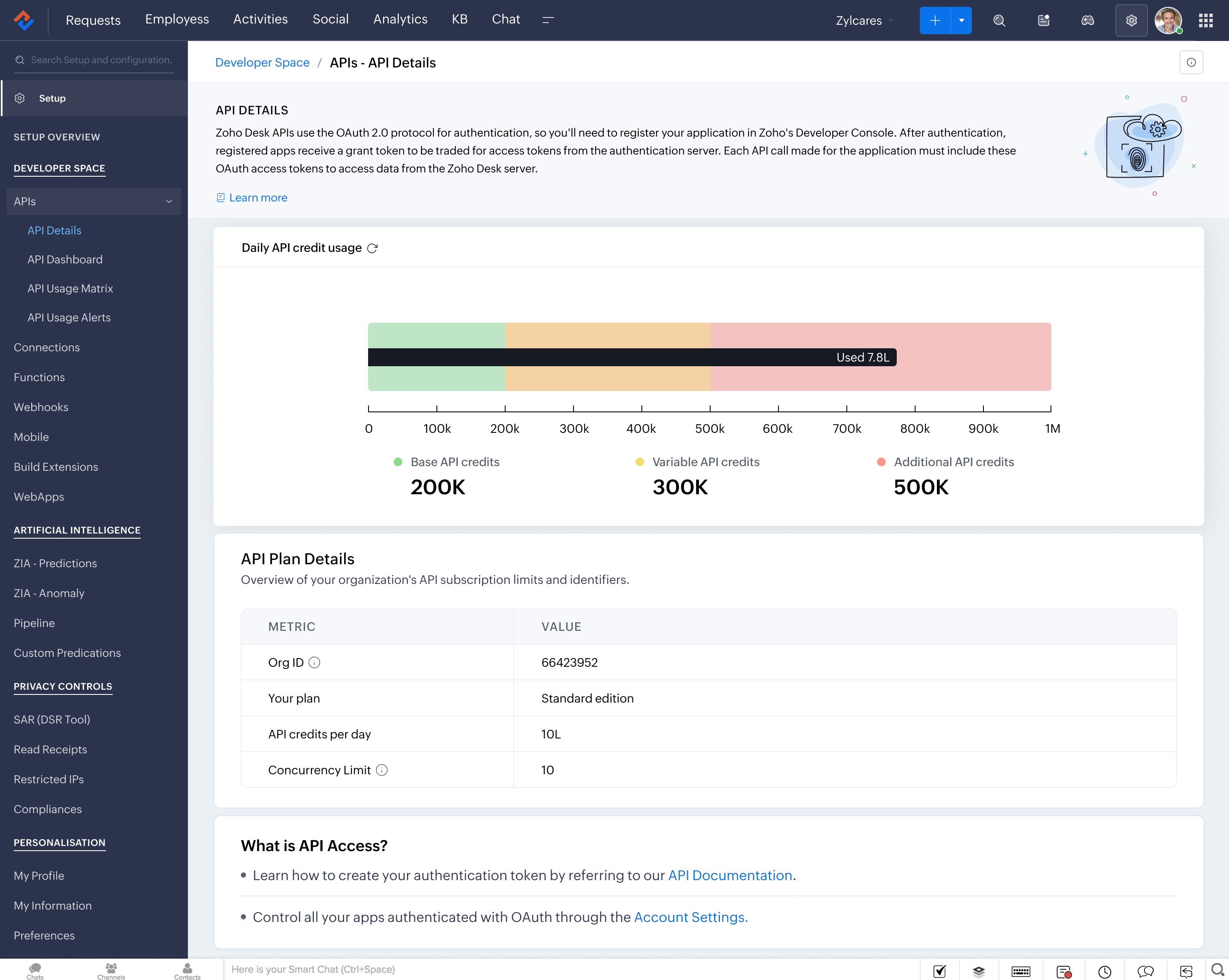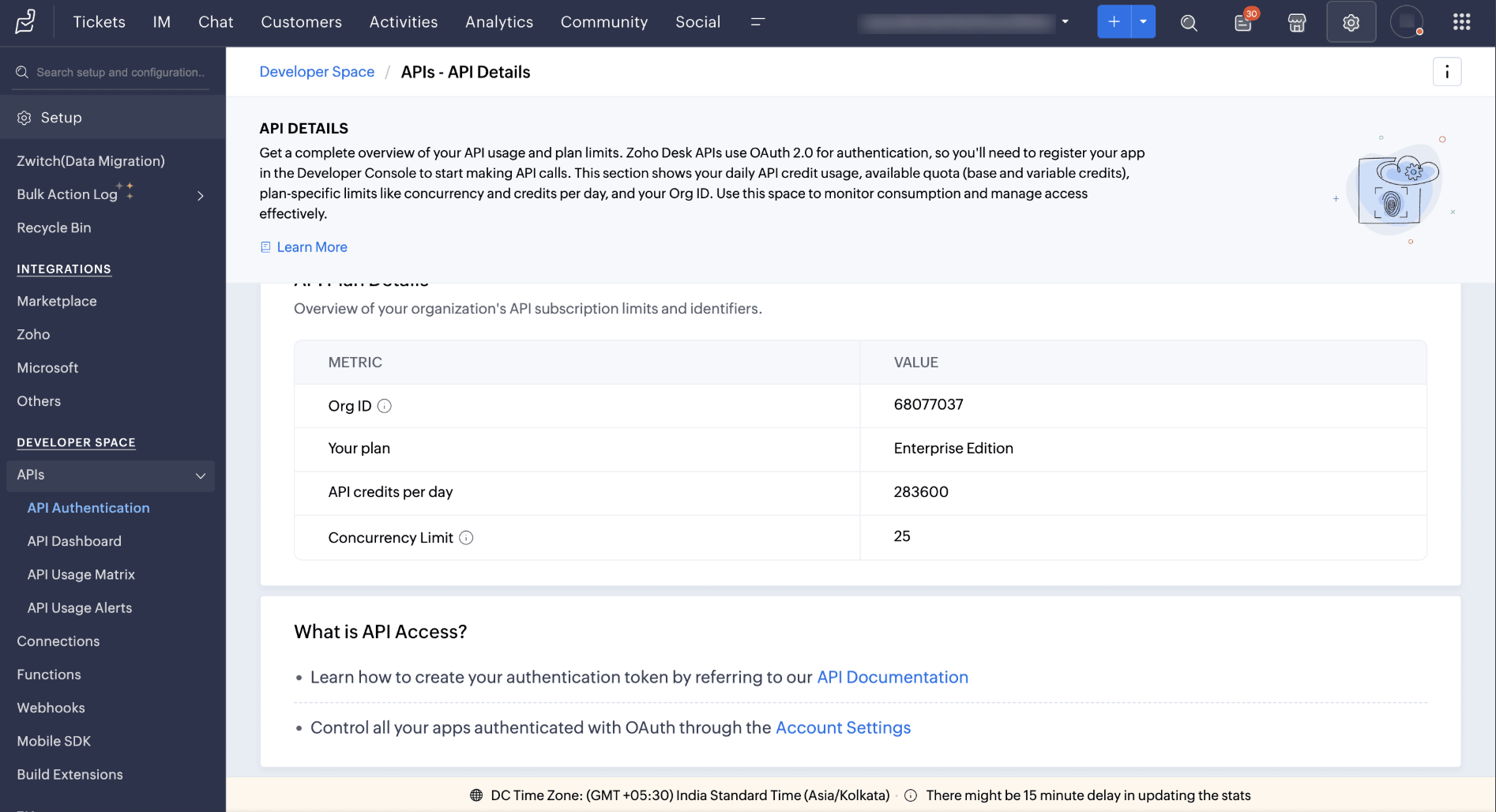 API credits in Zoho Desk work like a usage meter, tracking how many API calls you make and ensuring the system stays fast and reliable for everyone.