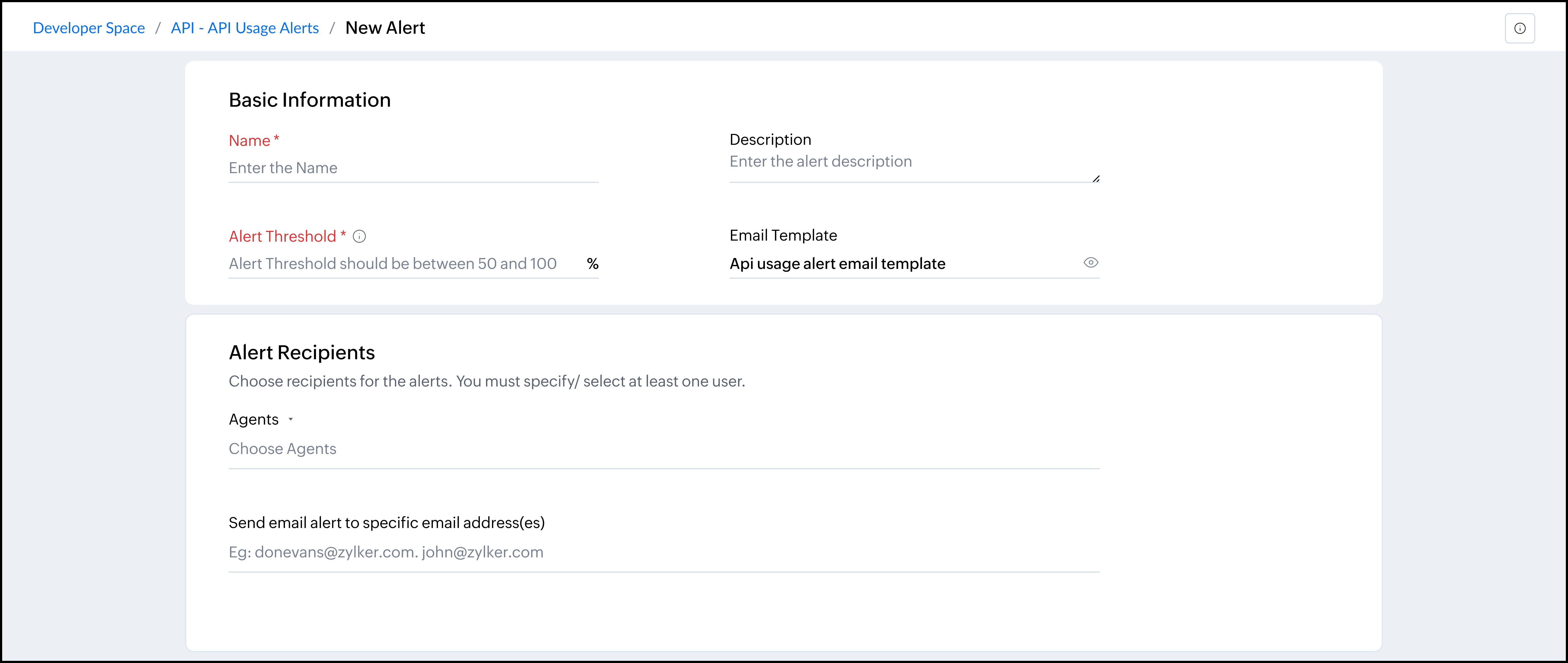 API Usage Alerts allows users to receive notifications when the usage of API meets a specified threshold. Users can create alerts by limiting the threshold value and selecting the recipients of those notifications. This ensures that when the threshold is reached, emails are sent to the intended recipients.