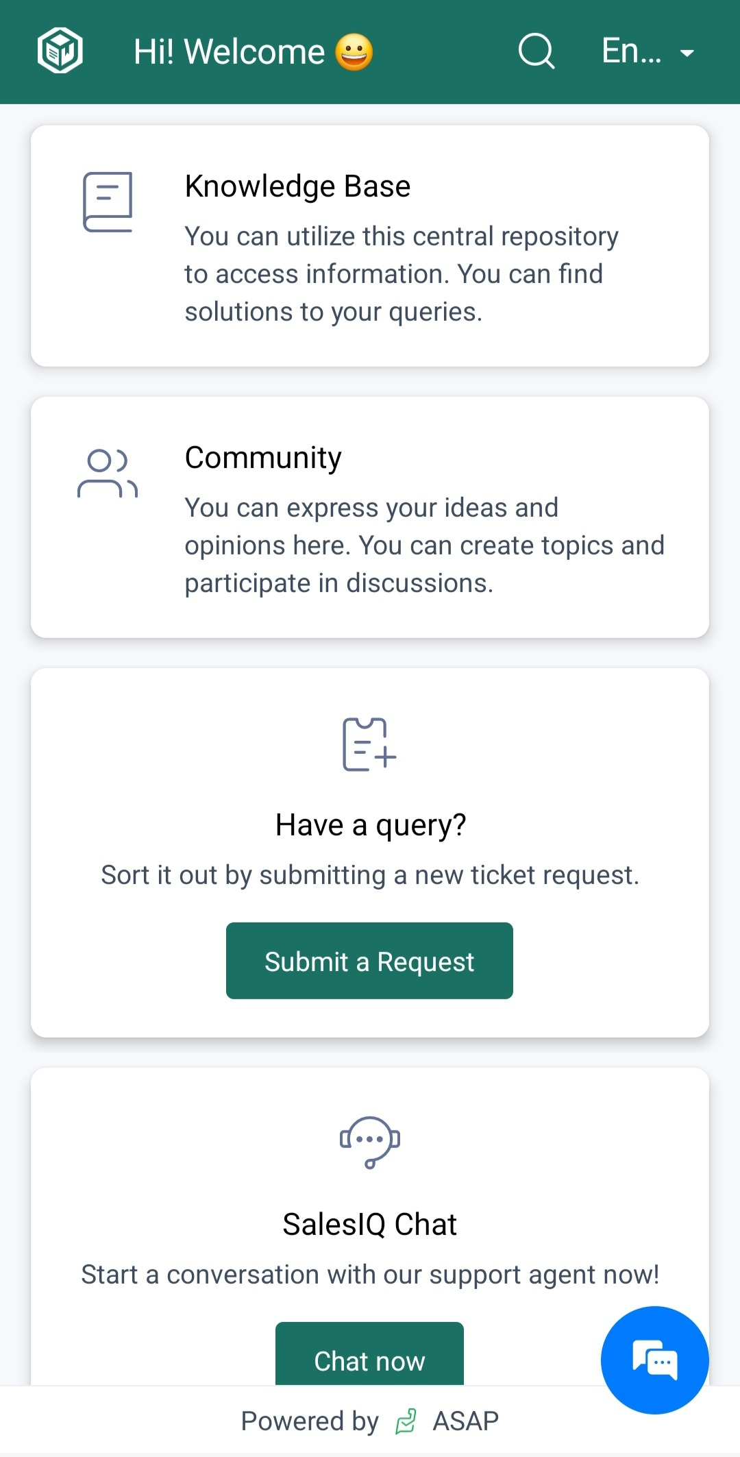 - ZohoDeskPortalSalesIQ.hideQueueTime(true)