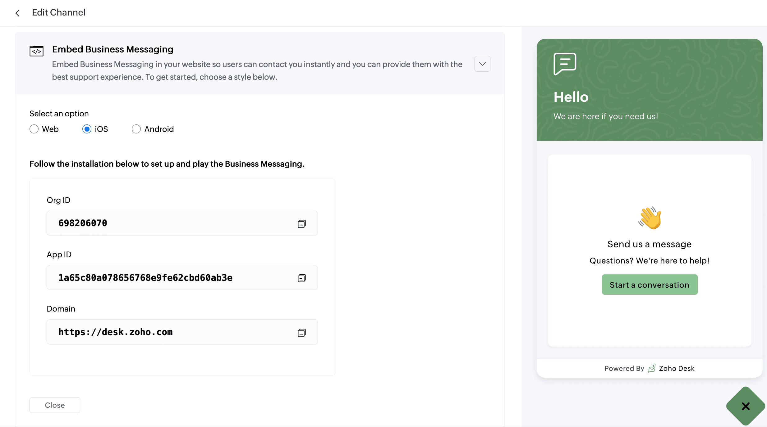 You can seamlessly use the iOS SDK to integrate the Business Messaging widget on your existing application.