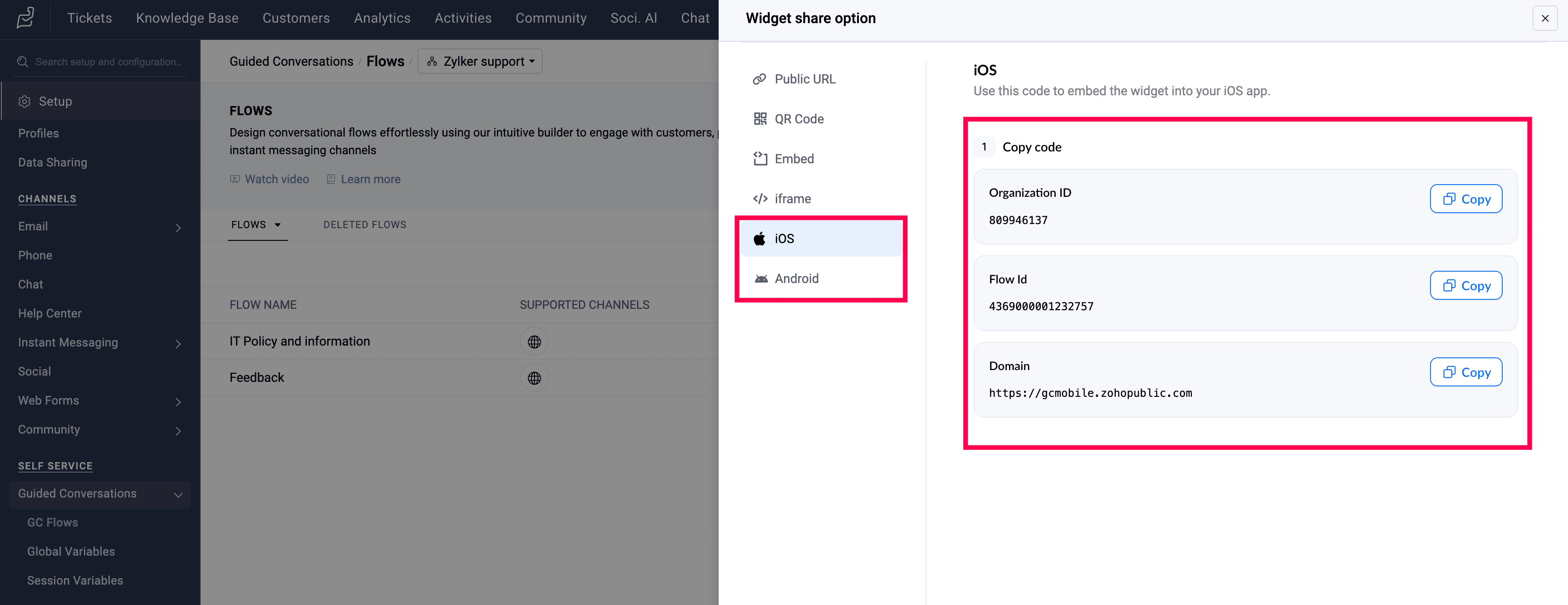 You need to integrate the GC flow within your Android app to create and register the help widget in Zoho Desk.