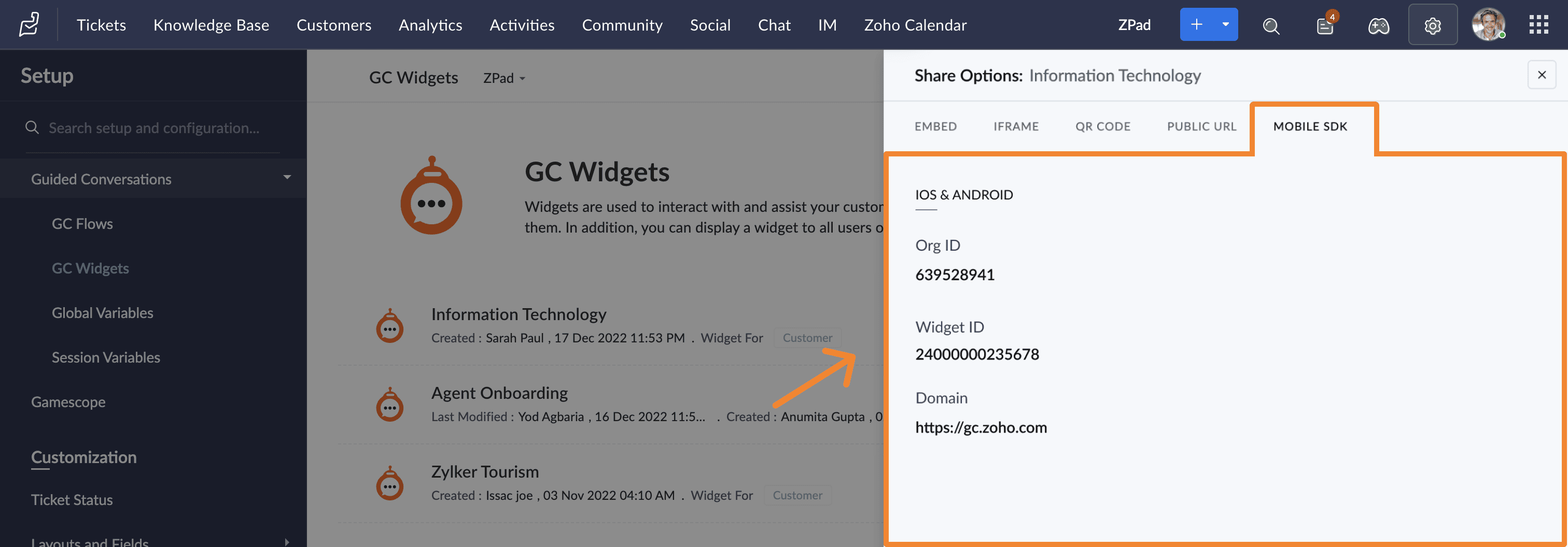 1. In Zoho Desk, go to Setup > GENERAL > Guided Conversations.
