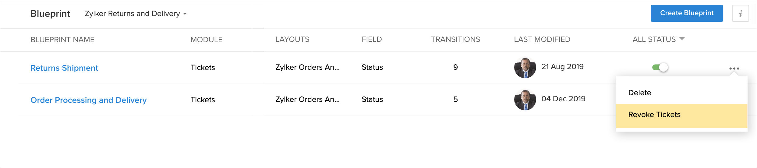 That said, you can at anytime revoke tickets that are stuck in a disabled blueprint. This ensures that the tickets are worked upon by your agents outside of the process.