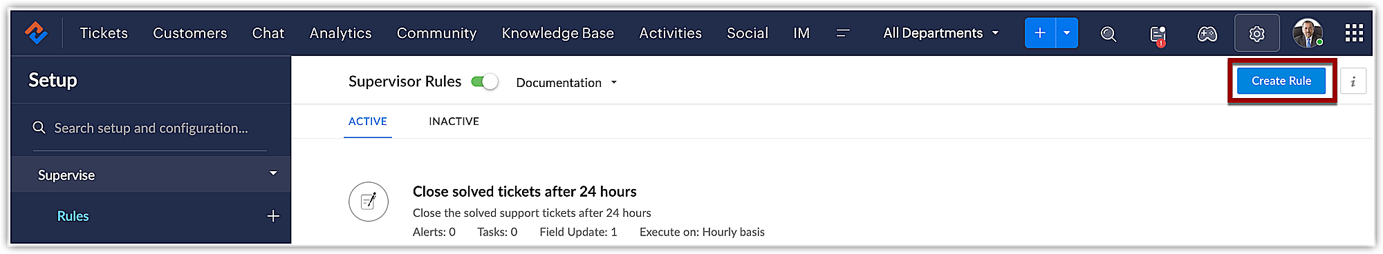 You have successfully activated your Supervisor Rule. After 72 hours, all the tickets awaiting customer response will be automatically marked closed.