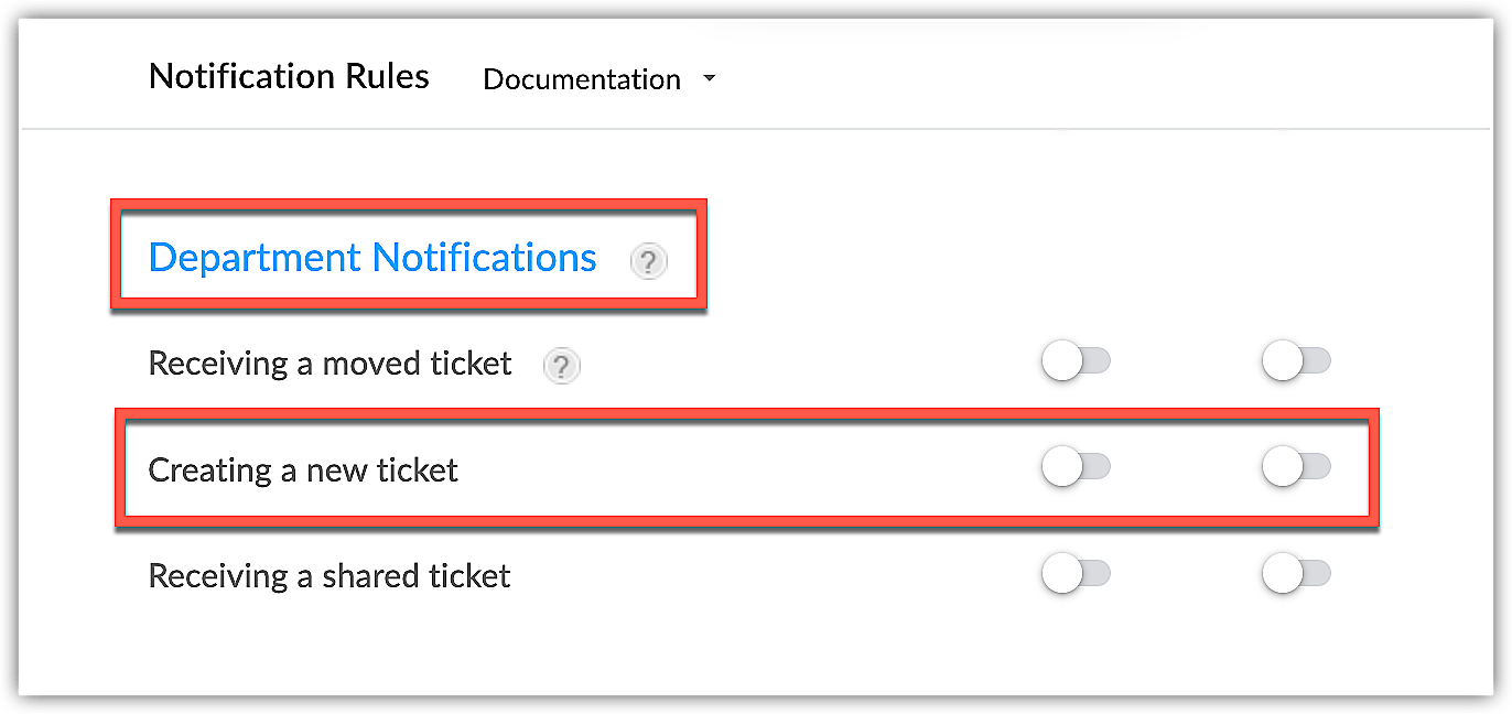 3. On the Notification Rules page, go to Department Notifications and toggle on the email notification under Creating a new ticket.