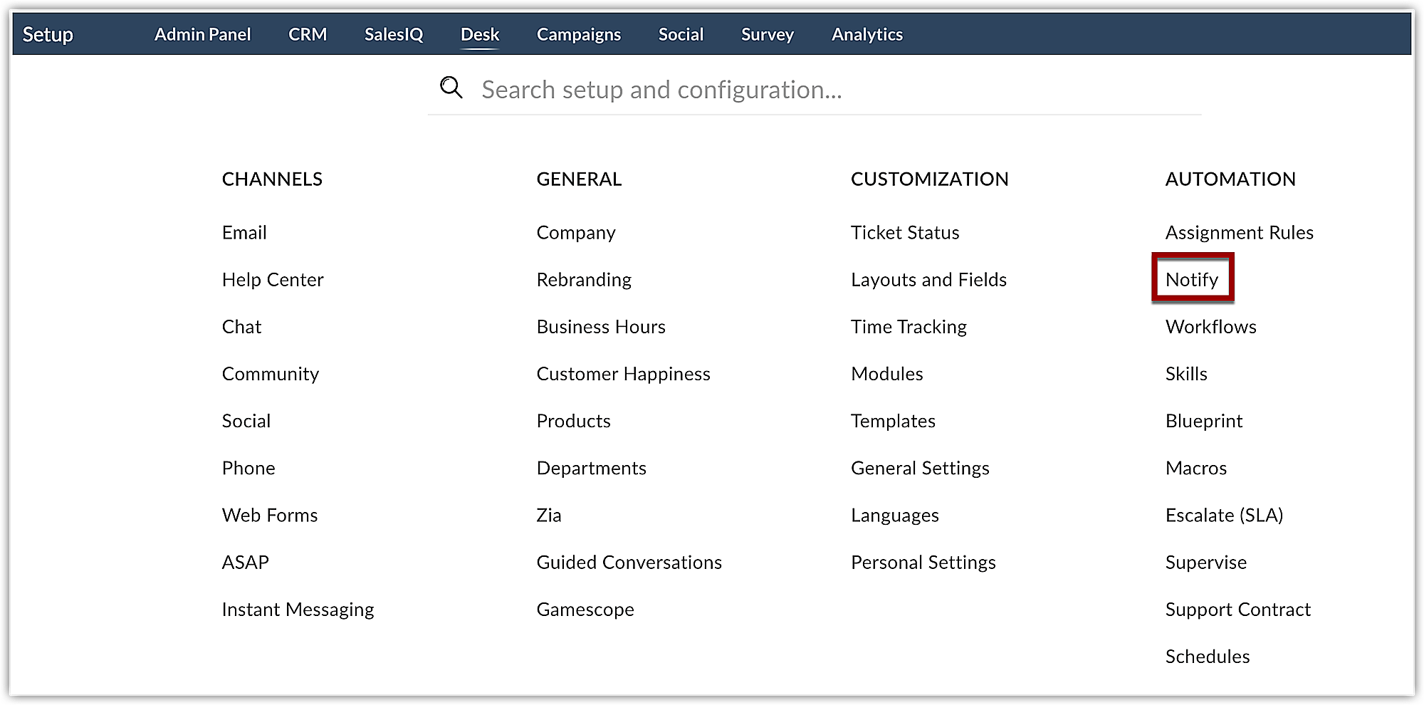 Zoho Desk is a customer service application that lets businesses perform several activities in a desired manner through automation. A user with a Support Administrator profile can setup automation in your Desk account.