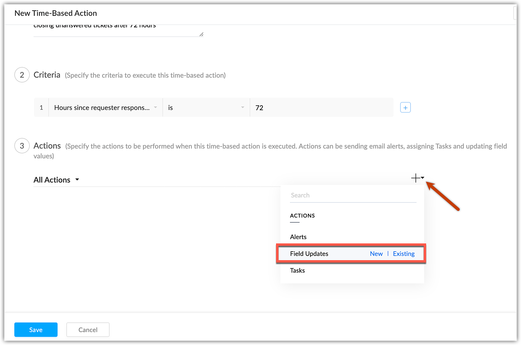 Zoho Desk can use automation to automatically close pending tickets awaiting a customer response by creating time-based actions. Tickets that remain unanswered by customers for, say, 48-72 hours (you can choose custom hours depending upon your ticket resolution period) are automatically marked as closed. This will help you maintain the flow of support tickets without any hit on efficiency.
