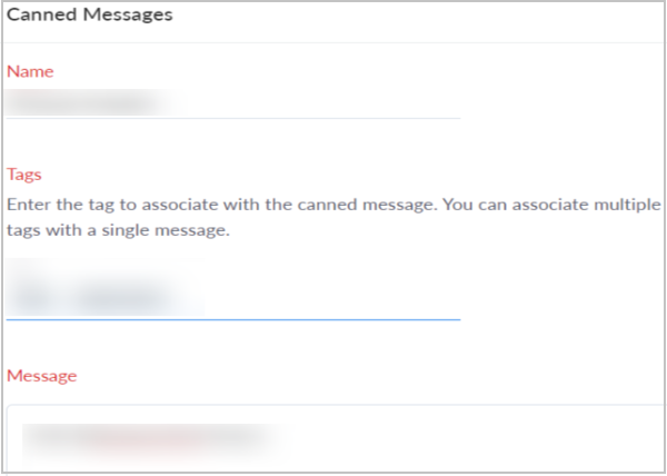 3. On the Canned Message page, enter a name, tags, and a message.