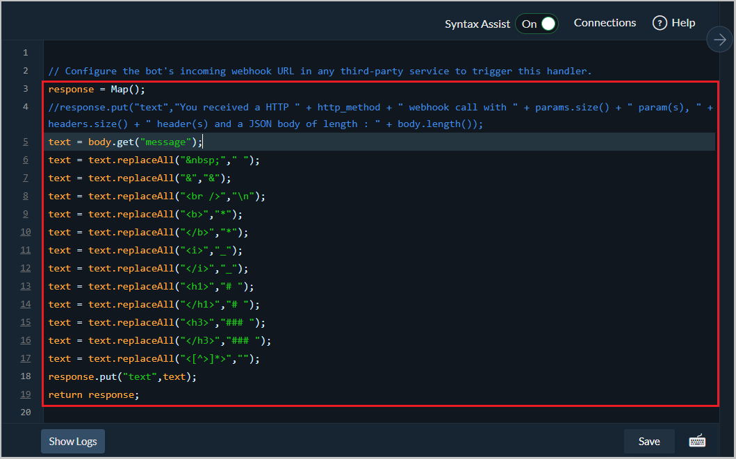 text = text.replaceAll("<b>","*"); // Replace the HTML bold element (<b>) with cliq's markdown support (*).