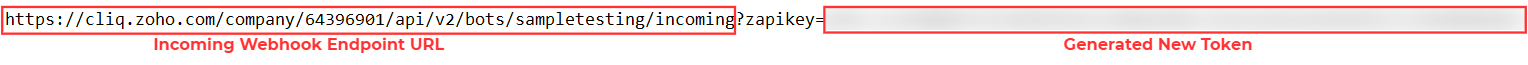 9. Append the copied token to the incoming webhook endpoint URL as below: