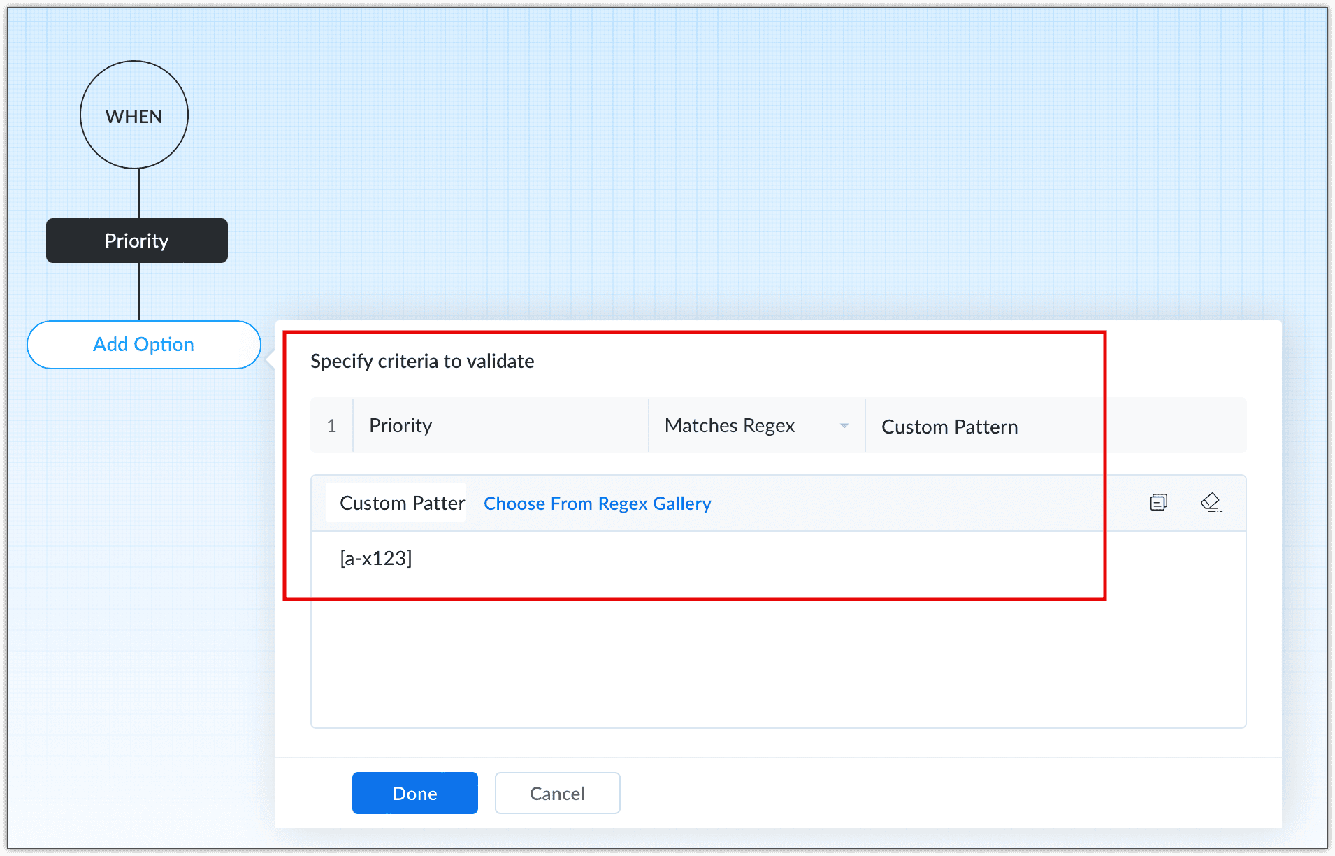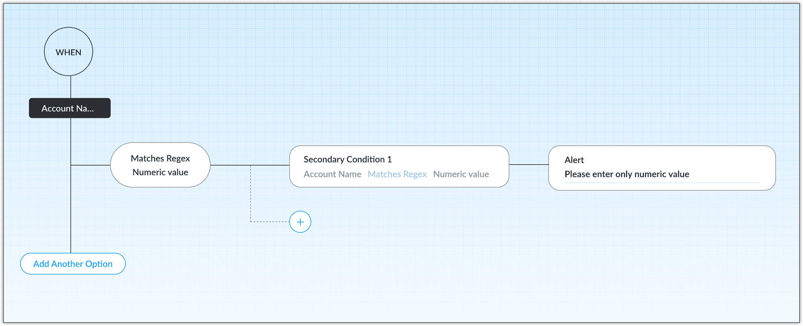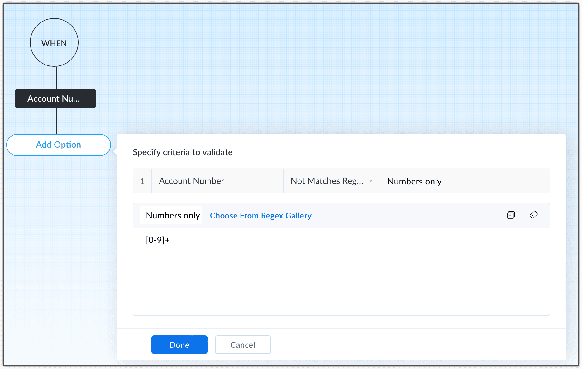 - Advanced validation with regex - Regex is used in a validation rule to check the given input against a pattern used to match and search text based on specific patterns.