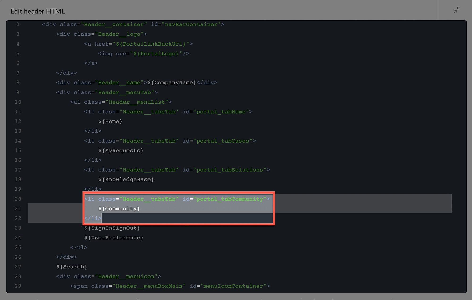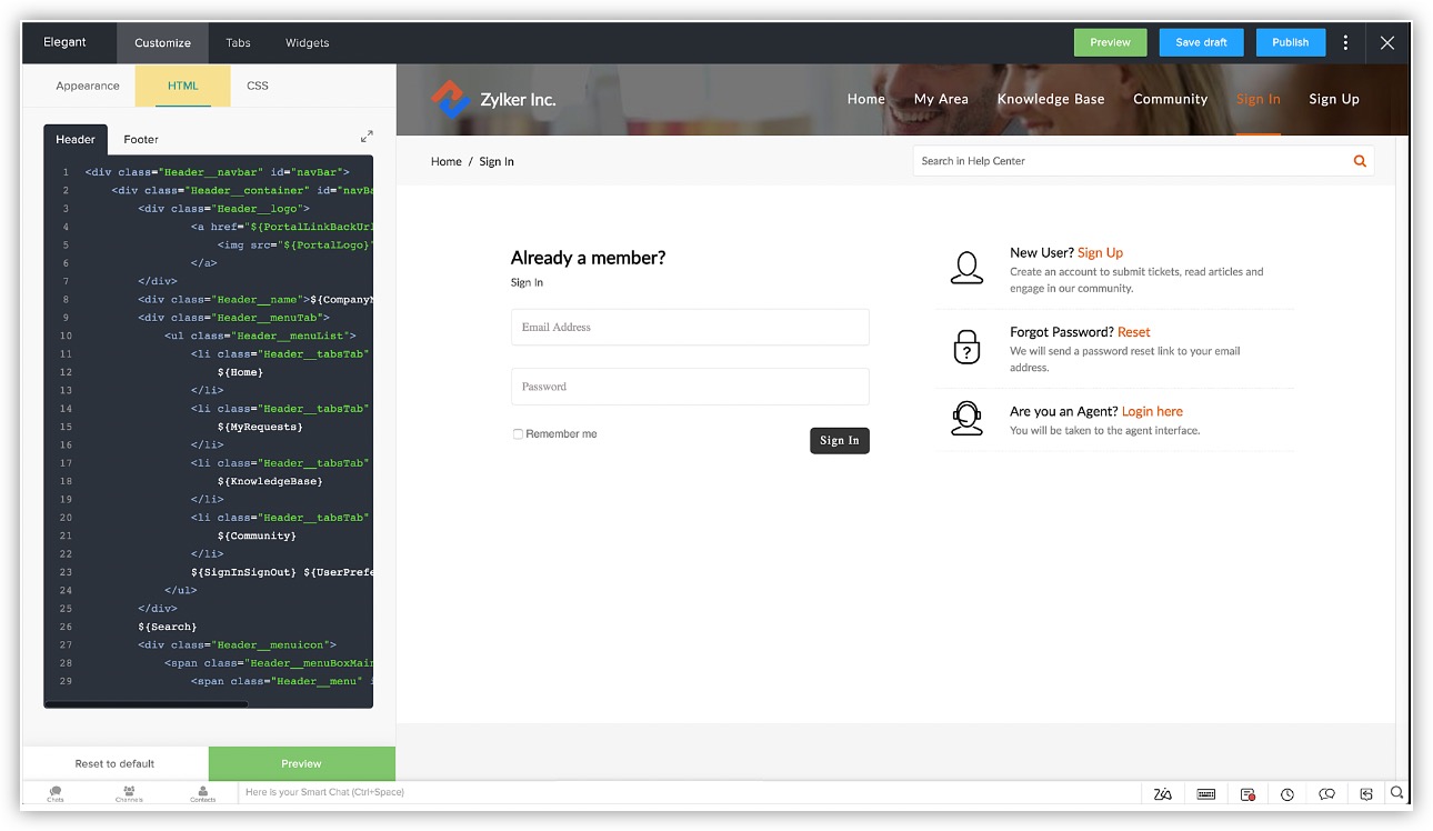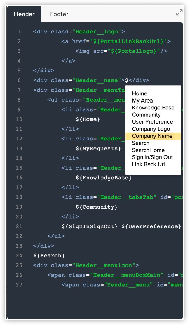 By default, Zoho Desk provides a list of HTML placeholders that can be used to customize the header and footer.